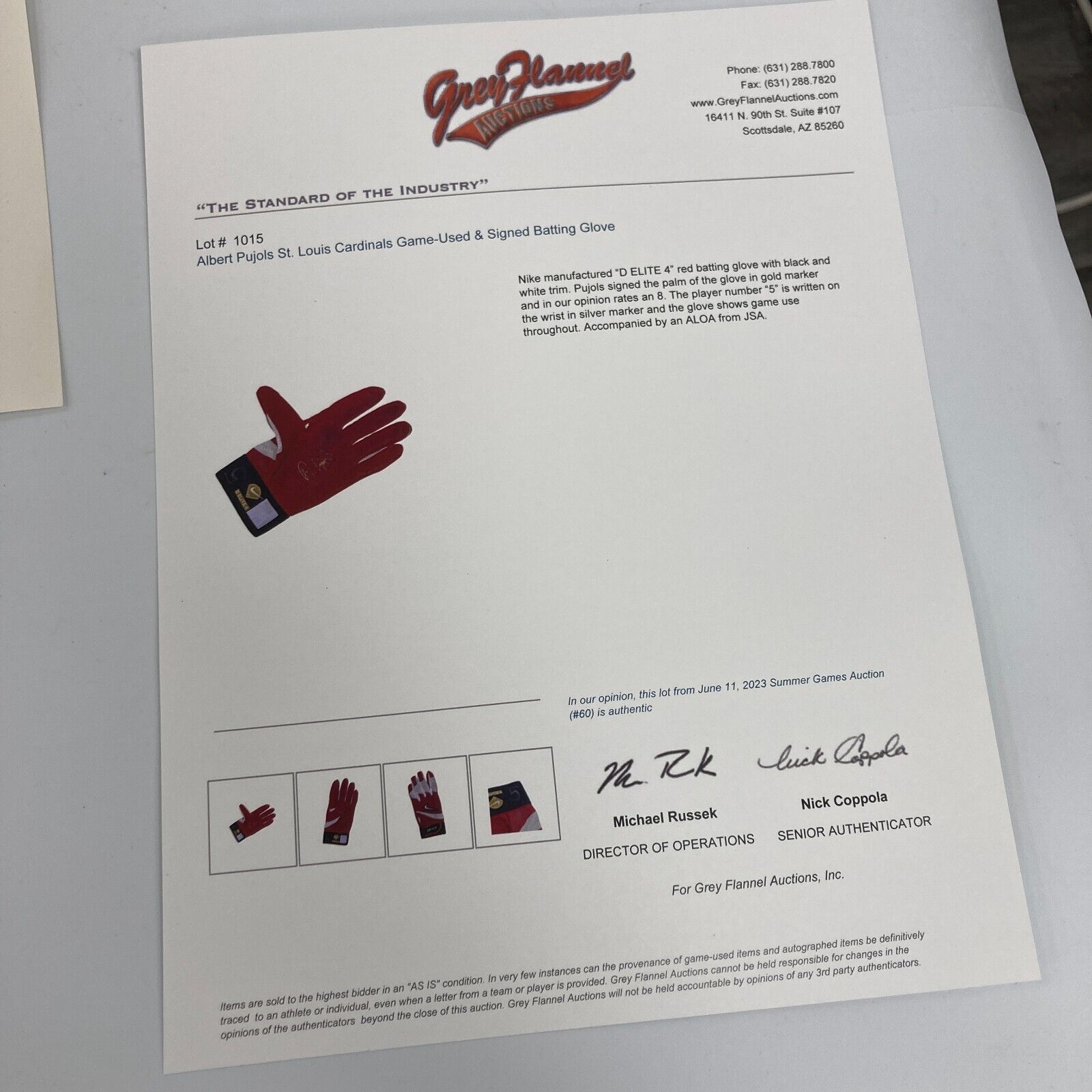 2001 Albert Pujols "ROY '01" Rookie Game Used Dual-Signed Batting Gloves JSA COA