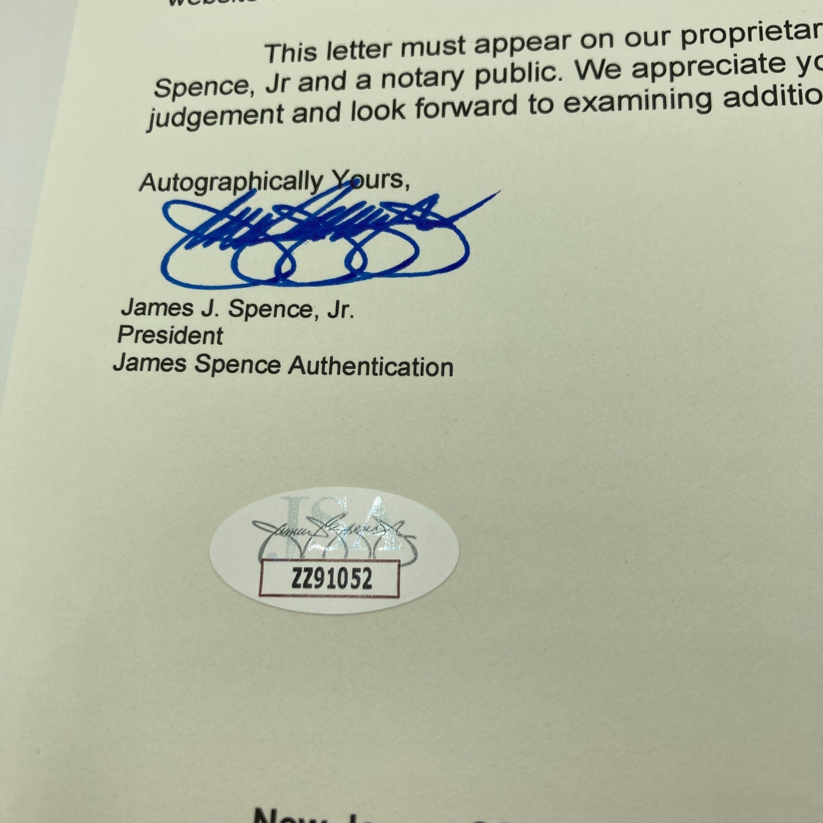 Comes with full letter JSA COA.