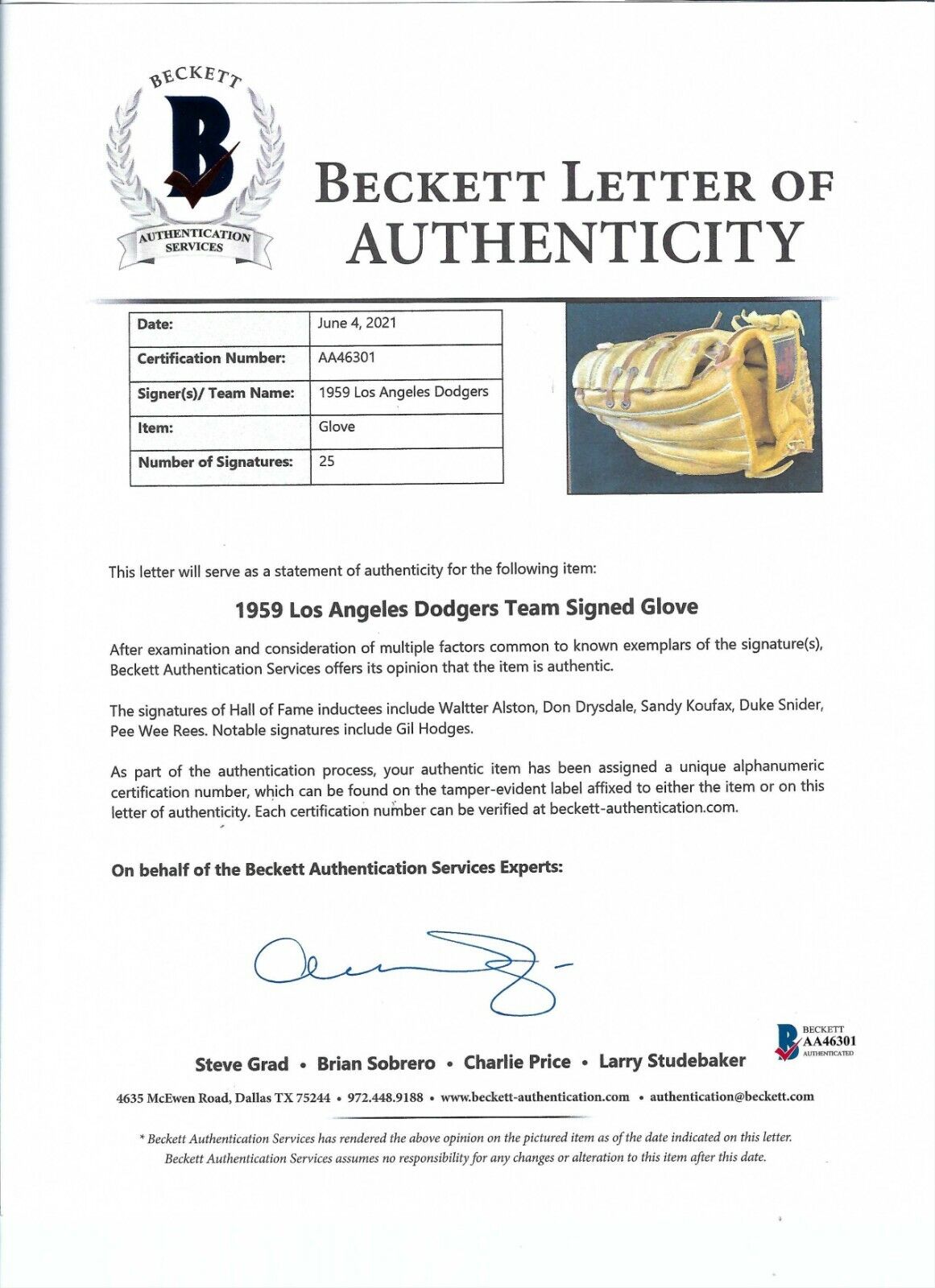 1959 Los Angeles Dodgers World Series Champs Team Signed 1950's Glove Beckett