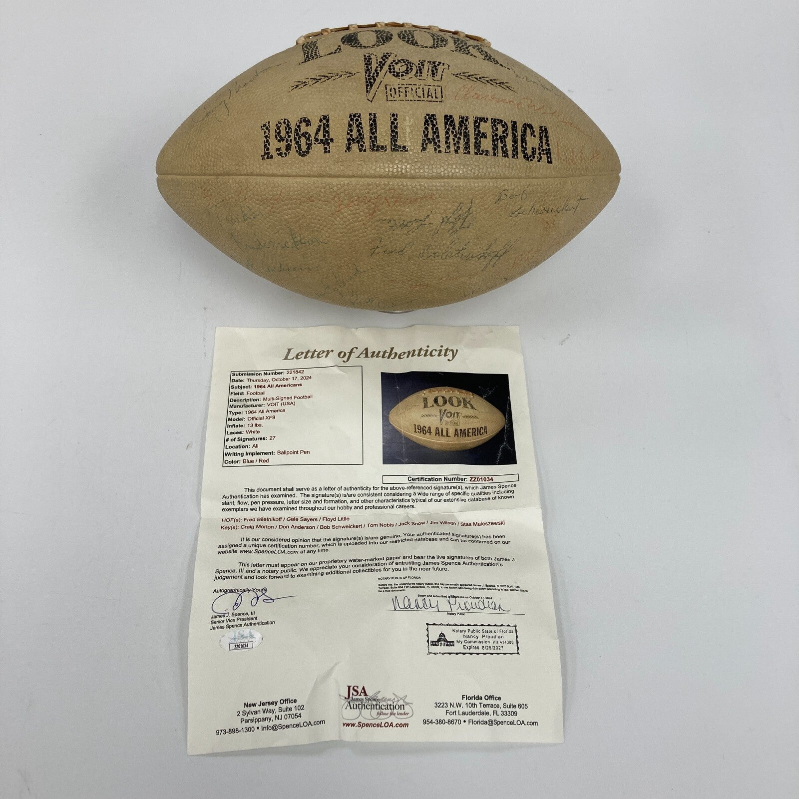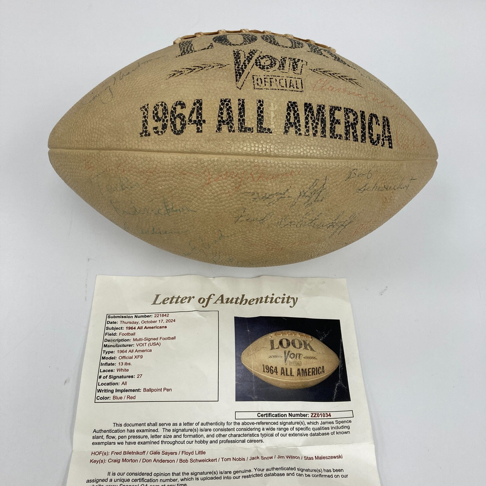 1964 All Americans Team Signed Football with 27 signatures.