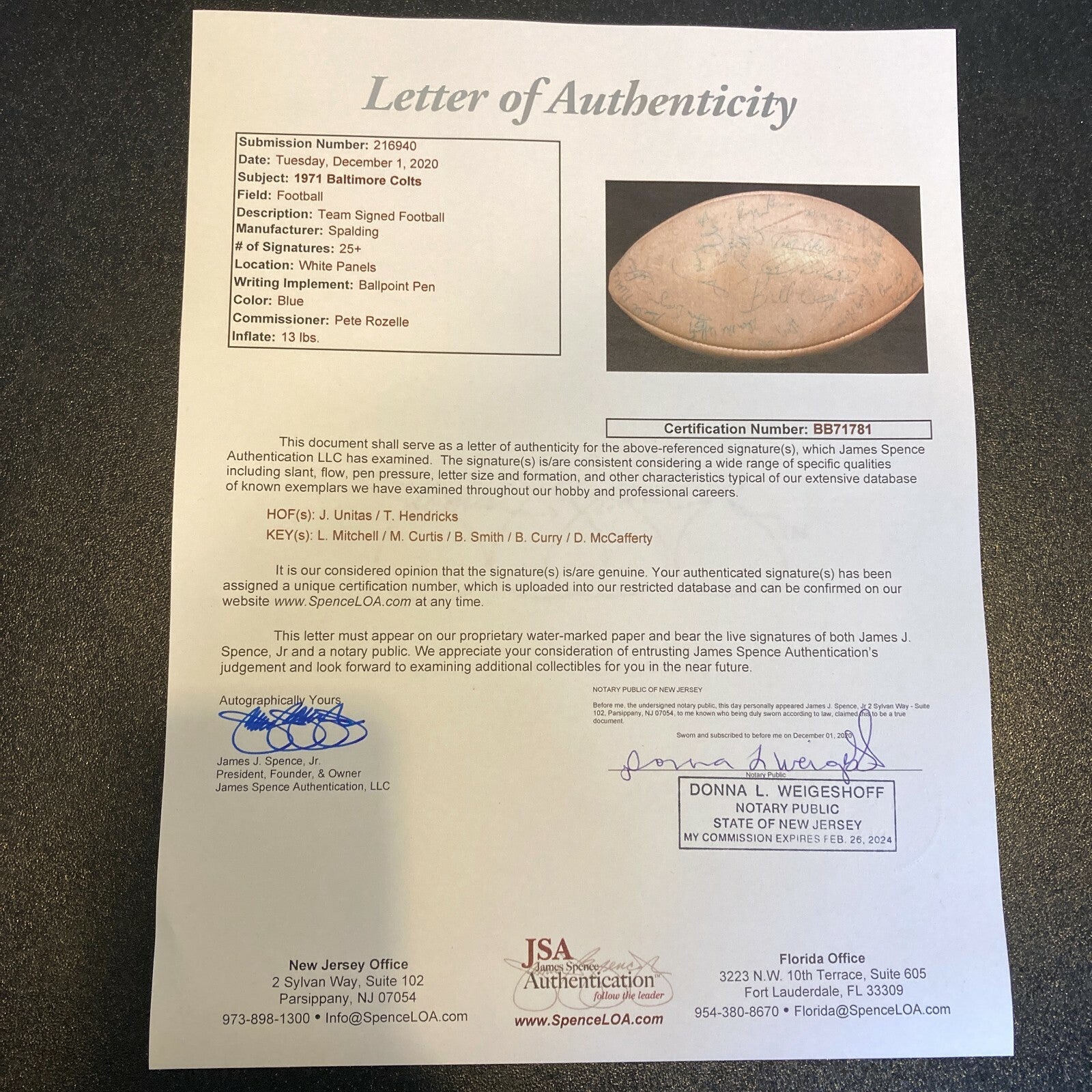 1971 Baltimore Colts Team Signed Official NFL Football 30+ Signatures with Johnny Unitas. Full letter JSA COA.