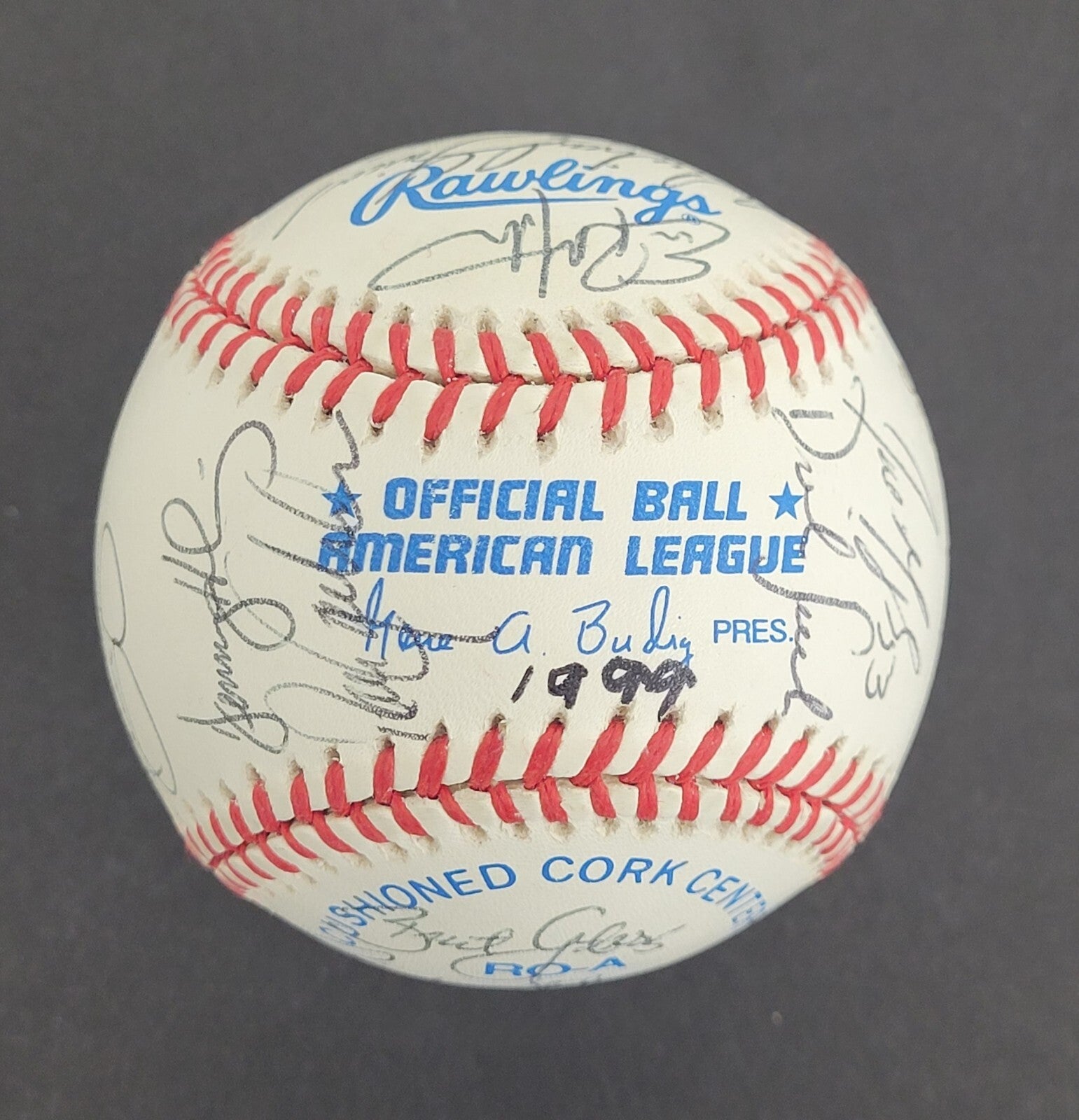 This official American League Baseball has been personally signed by 27 members of the 1999 Twins team. Key signatures include: Tom Kelly, Rick Aguilera, Brad Radke. Accompanied by a full Beckett Letter of Authenticity.