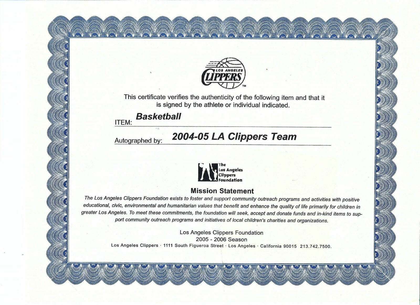 2004-05 Los Angeles Clippers Team Signed Spalding NBA Basketball Beckett COA