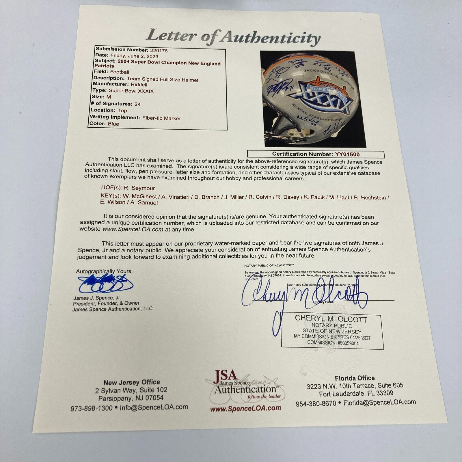 Click or scroll to zoom Tap or pinch to zoom Click or scroll to zoom Tap or pinch to zoom Click or scroll to zoom Tap or pinch to zoom Click or scroll to zoom Tap or pinch to zoom Click or scroll to zoom Tap or pinch to zoom Click or scroll to zoom Tap or pinch to zoom Click or scroll to zoom Tap or pinch to zoom Click or scroll to zoom Tap or pinch to zoom Click or scroll to zoom Tap or pinch to zoom Click or scroll to zoom Tap or pinch to zoom Click or scroll to zoom Tap or pinch to zoom 2004 New England Patriots Super Bowl Champs Team Signed Helmet JSA COA $2,495.00 1 2 3 4 5 6 7 8 9 10+ Quantity Quantity Add to cart This item is a recurring or deferred purchase. By continuing, I agree to the cancellation policy and authorize you to charge my payment method at the prices, frequency and dates listed on this page until my order is fulfilled or I cancel, if permitted. 2004 New England Patriots Super Bowl Champs Team Signed Helmet. 24 signatures. Comes with full letter JSA COA.
