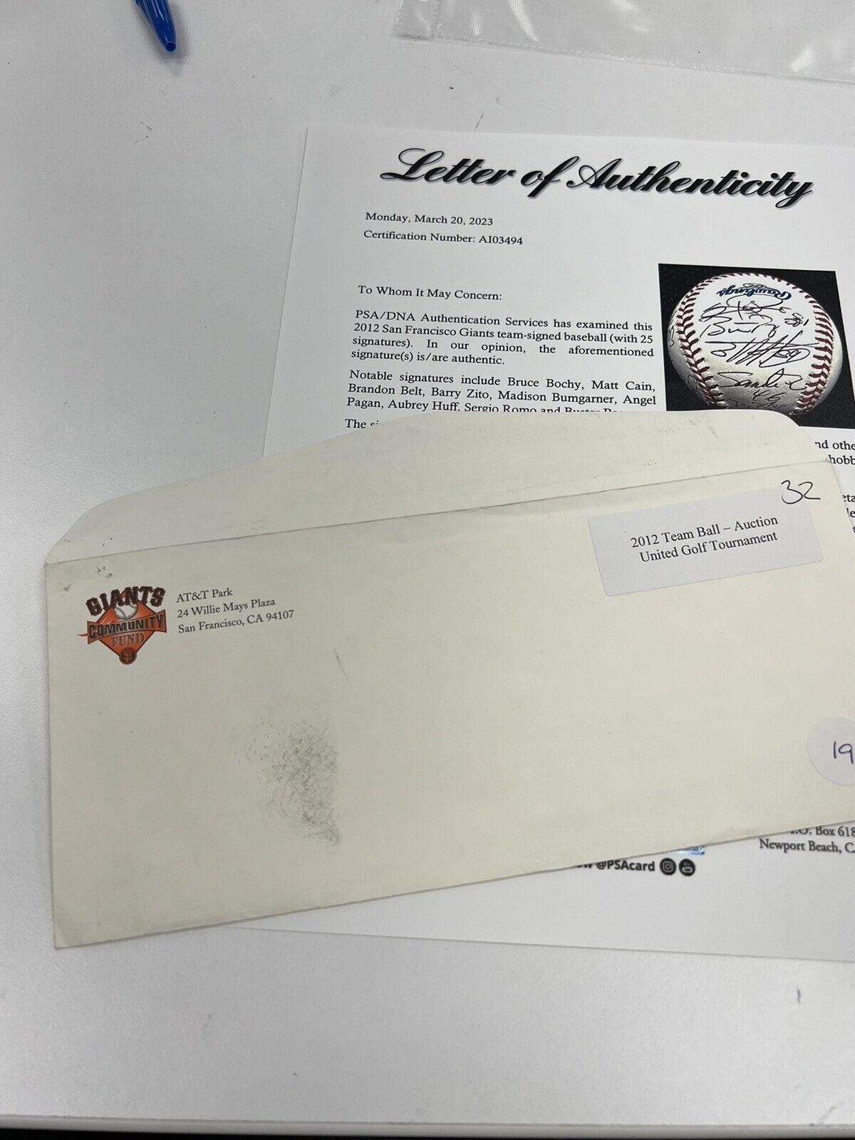 2012 San Francisco Giants World Series Champs Team Signed Baseball PSA DNA COA