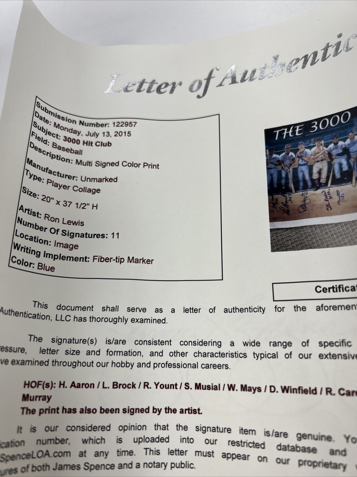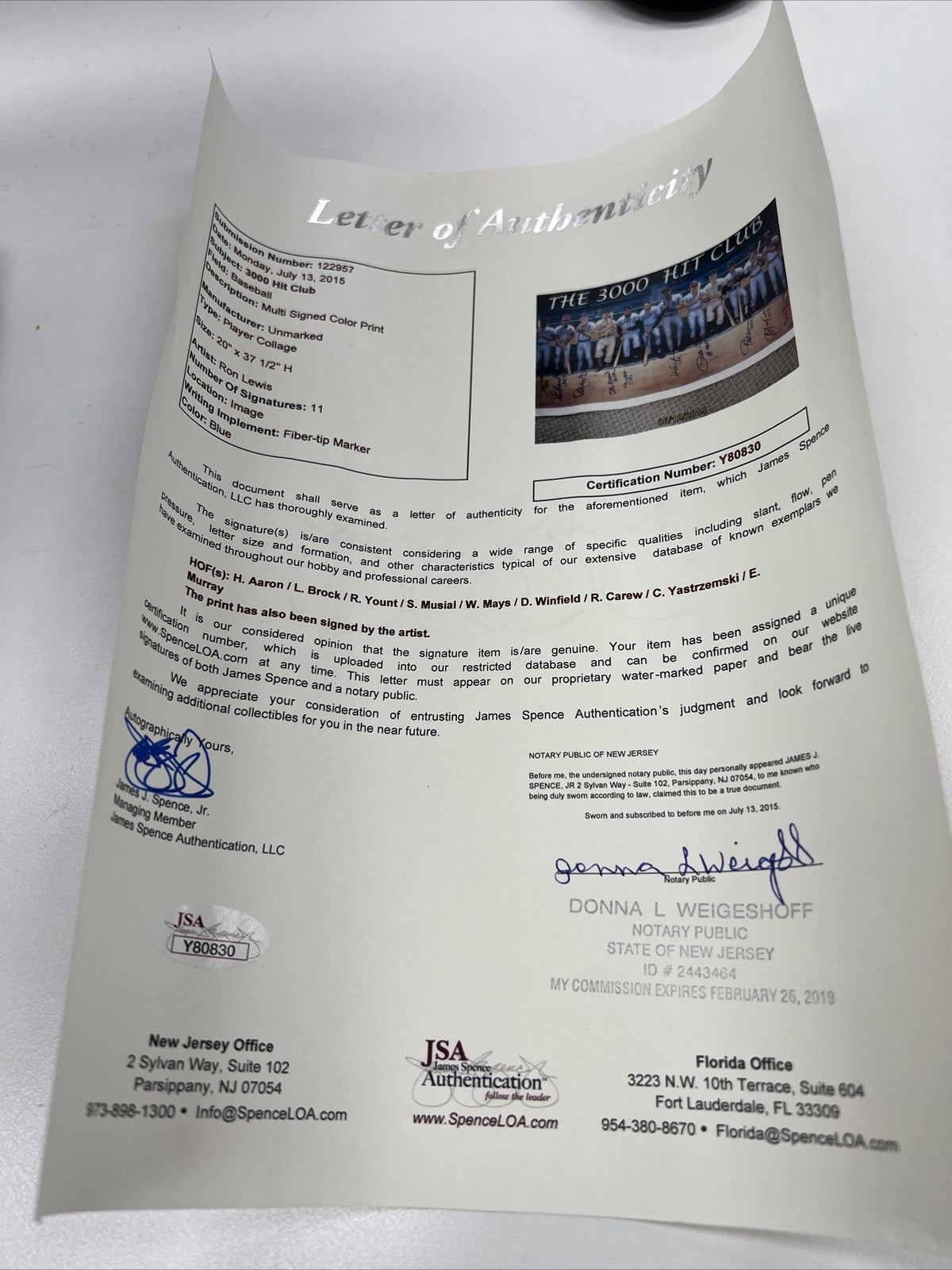 3,000 Hit Club Signed Large Lithograph Photo 11 Sigs Willie Mays Hank Aaron JSA