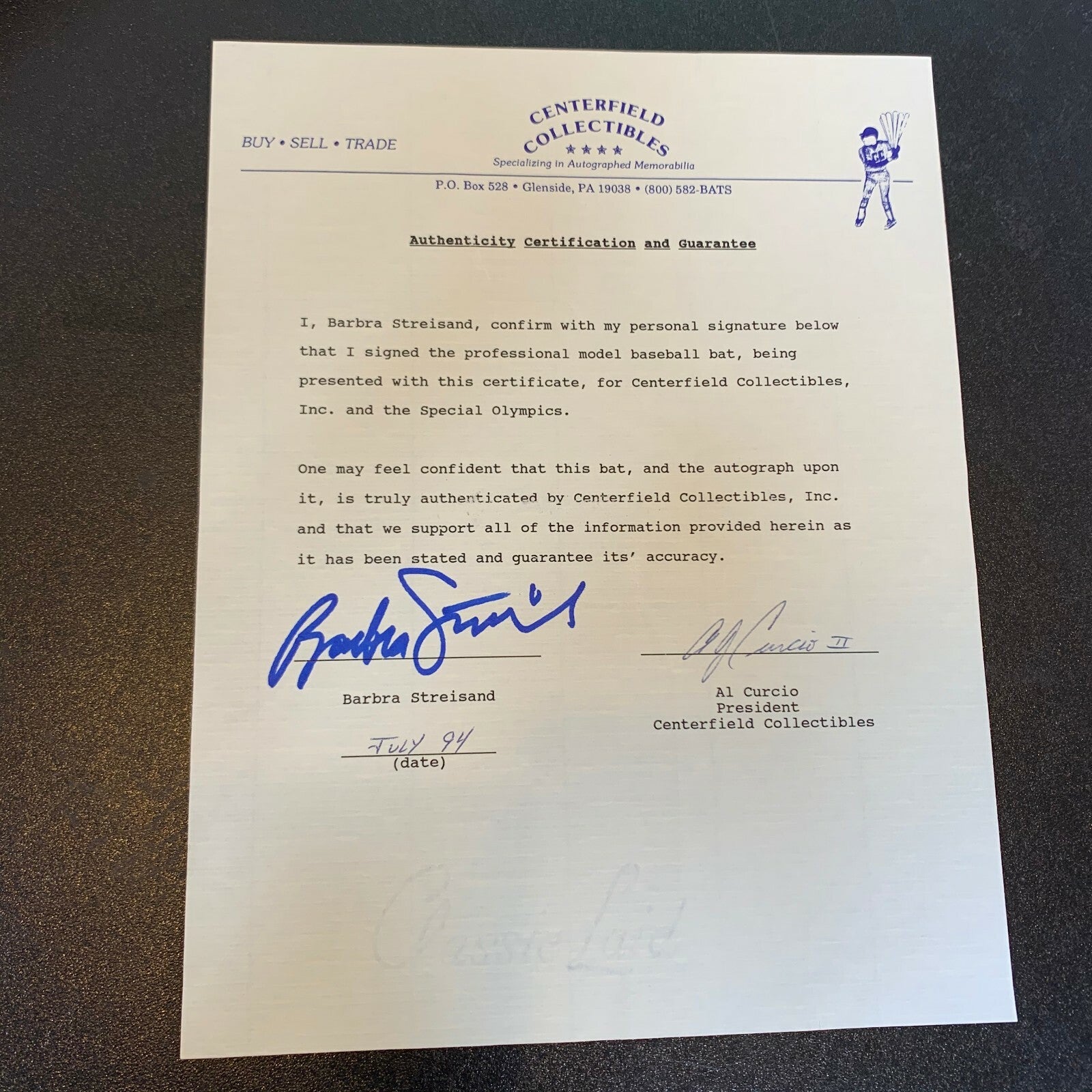 Click or scroll to zoom Tap or pinch to zoom Click or scroll to zoom Tap or pinch to zoom Click or scroll to zoom Tap or pinch to zoom Click or scroll to zoom Tap or pinch to zoom Click or scroll to zoom Tap or pinch to zoom Click or scroll to zoom Tap or pinch to zoom Click or scroll to zoom Tap or pinch to zoom Click or scroll to zoom Tap or pinch to zoom Barbra Streisand Signed Special Edition Rawlings Baseball Bat With Signed Letter $1,495.00 1 2 3 4 5 6 7 8 9 10+ Quantity Quantity Add to cart This item is a recurring or deferred purchase. By continuing, I agree to the cancellation policy and authorize you to charge my payment method at the prices, frequency and dates listed on this page until my order is fulfilled or I cancel, if permitted. Barbra Streisand Signed Special Edition Rawlings Baseball Bat With Signed Letter#4629124Bat Bin #8