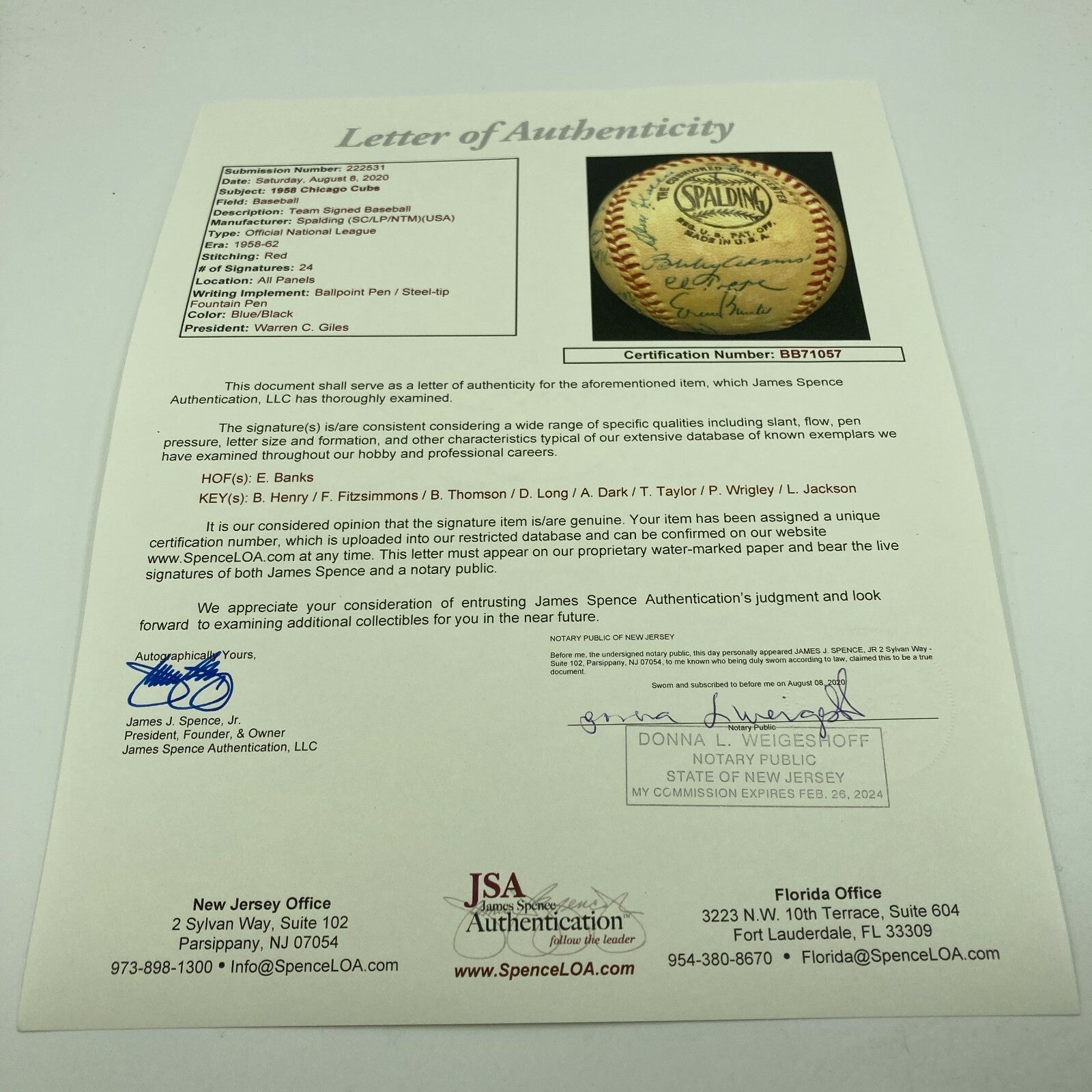Beautiful 1958 Cubs Team Signed National League Baseball Ernie Banks JSA COA