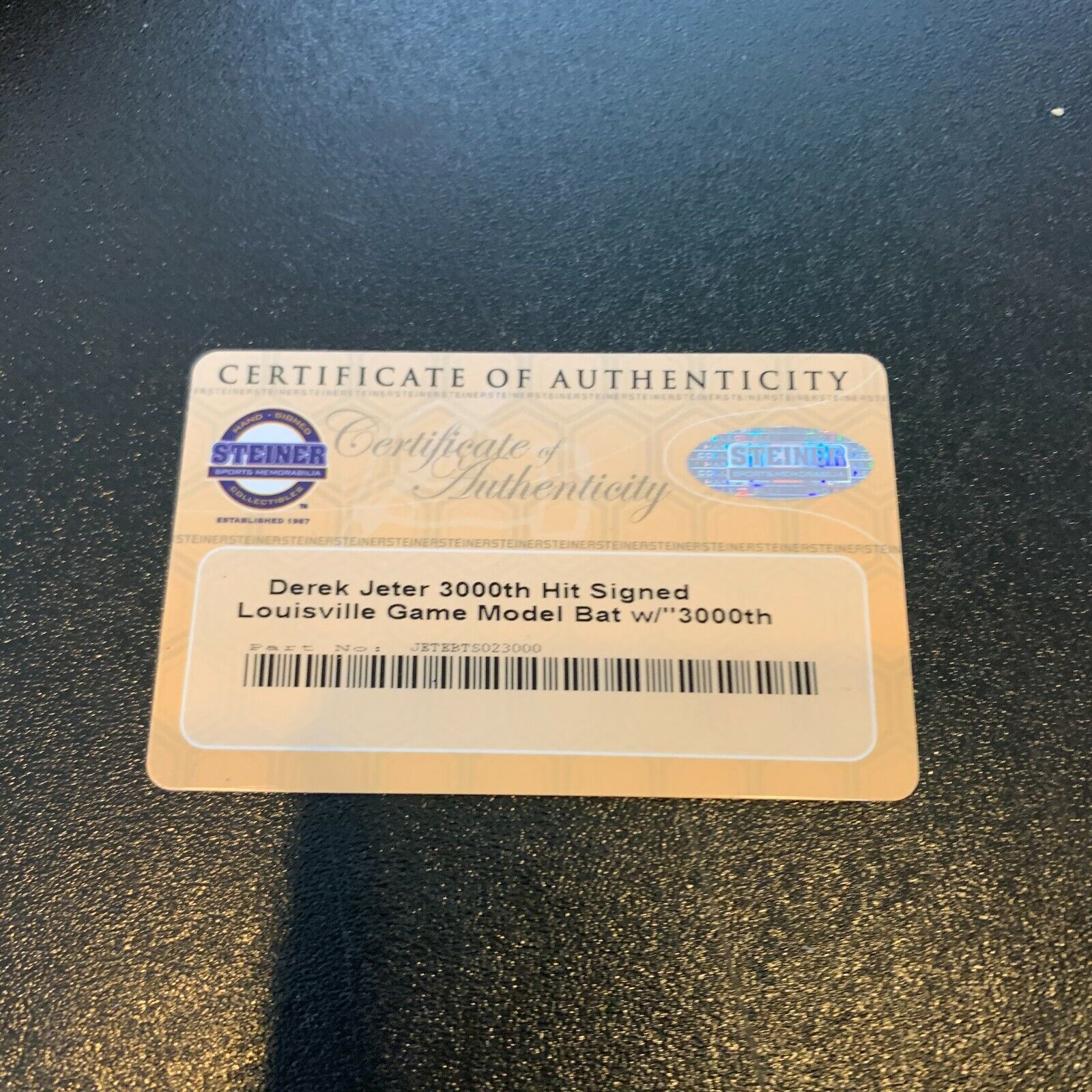Click or scroll to zoom Tap or pinch to zoom Click or scroll to zoom Tap or pinch to zoom Click or scroll to zoom Tap or pinch to zoom Click or scroll to zoom Tap or pinch to zoom Click or scroll to zoom Tap or pinch to zoom Click or scroll to zoom Tap or pinch to zoom Beautiful Derek Jeter 3,000th Hit 7-9-11 Signed Inscribed Baseball Bat Steiner $2,495.00 1 2 3 4 5 6 7 8 9 10+ Quantity Quantity Add to cart This item is a recurring or deferred purchase. By continuing, I agree to the cancellation policy and authorize you to charge my payment method at the prices, frequency and dates listed on this page until my order is fulfilled or I cancel, if permitted. Beautiful Derek Jeter 3,000th Hit 7-9-11 Signed Inscribed Game Model Bat With Steiner COA #999672763 Bin #7