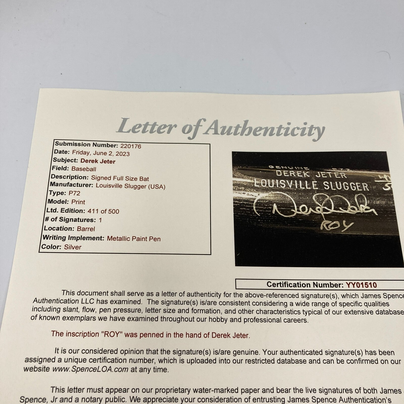 Click or scroll to zoom Tap or pinch to zoom Click or scroll to zoom Tap or pinch to zoom Click or scroll to zoom Tap or pinch to zoom Click or scroll to zoom Tap or pinch to zoom Click or scroll to zoom Tap or pinch to zoom Click or scroll to zoom Tap or pinch to zoom Click or scroll to zoom Tap or pinch to zoom Click or scroll to zoom Tap or pinch to zoom Beautiful Derek Jeter Rookie Of The Year 1996 Signed Game Model Bat JSA COA $2,495.00 1 2 3 4 5 6 7 8 9 10+ Quantity Quantity Add to cart This item is a recurring or deferred purchase. By continuing, I agree to the cancellation policy and authorize you to charge my payment method at the prices, frequency and dates listed on this page until my order is fulfilled or I cancel, if permitted. Beautiful Derek Jeter Rookie Of The Year 1996 Signed Game Model Bat. Comes with full letter JSA COA. Bin #18
