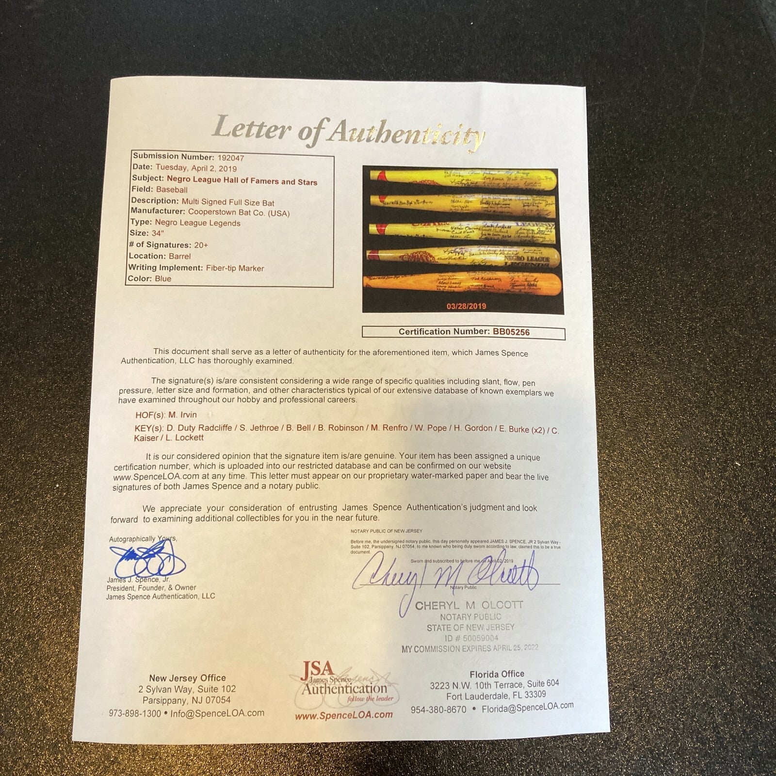Beautiful Negro League Legends Multi Signed Cooperstown Baseball Bat JSA COA
