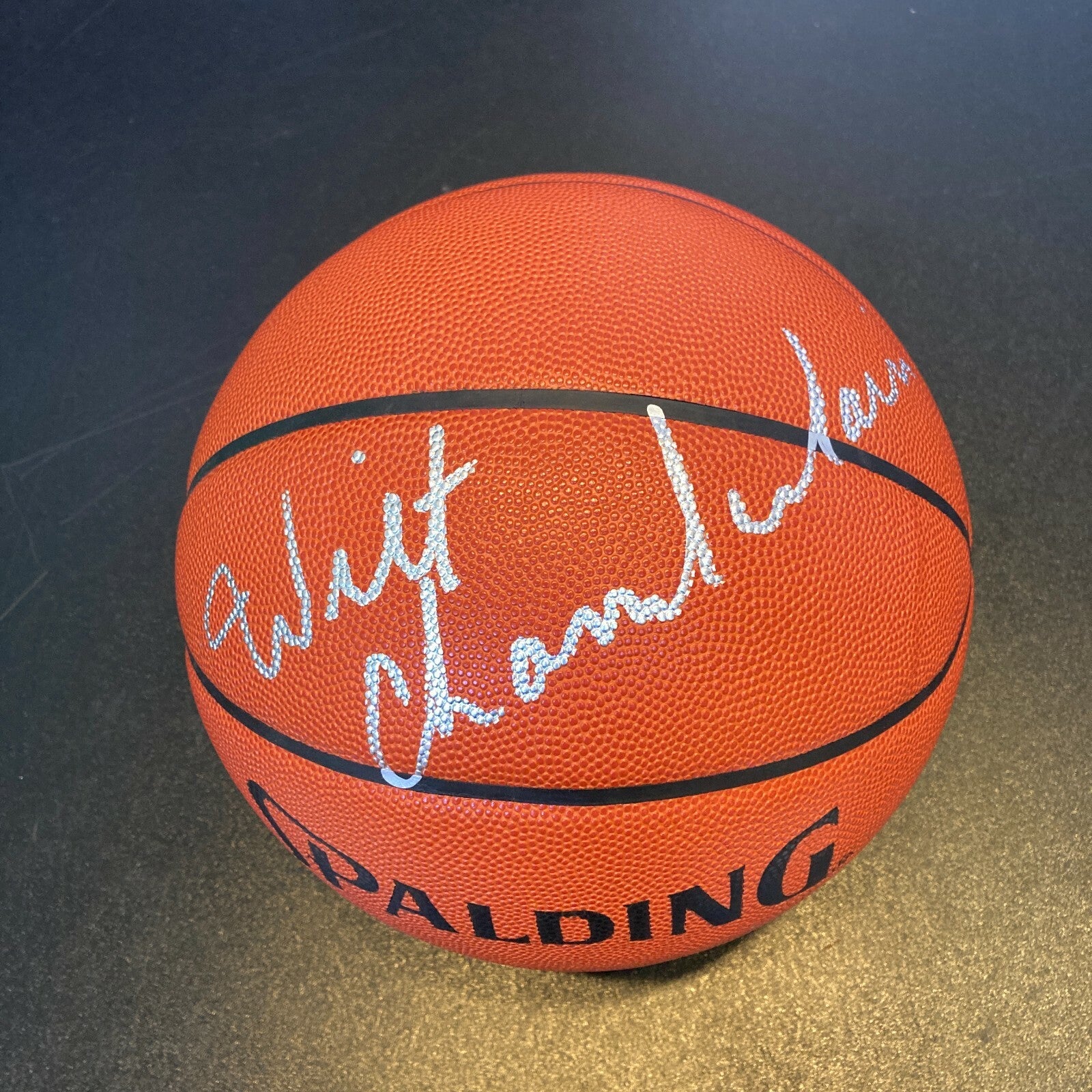 Beautiful Wilt Chamberlain #13 Signed Spalding NBA Official Game Basketball JSA COA. Signed in strong silver paint pen. The signature is graded a perfect GEM MINT 10 by JSA.
