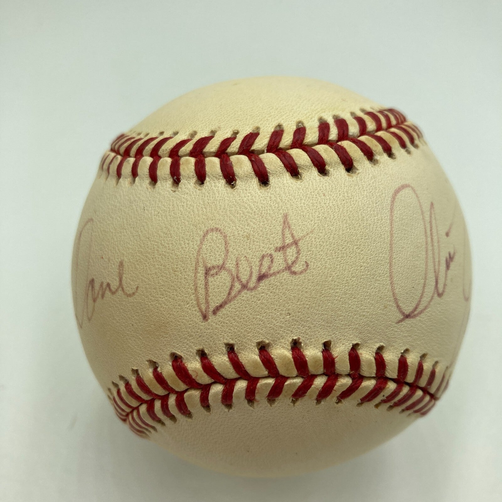 $3,995.00 Rogers Hornsby Gil Hodges Casey Stengel Signed National League Baseball Beckett Rogers Hornsby, Gil Hodges, Casey Stengel Signed 1962 New York Mets National League Baseball With full letter Beckett COA D#A1