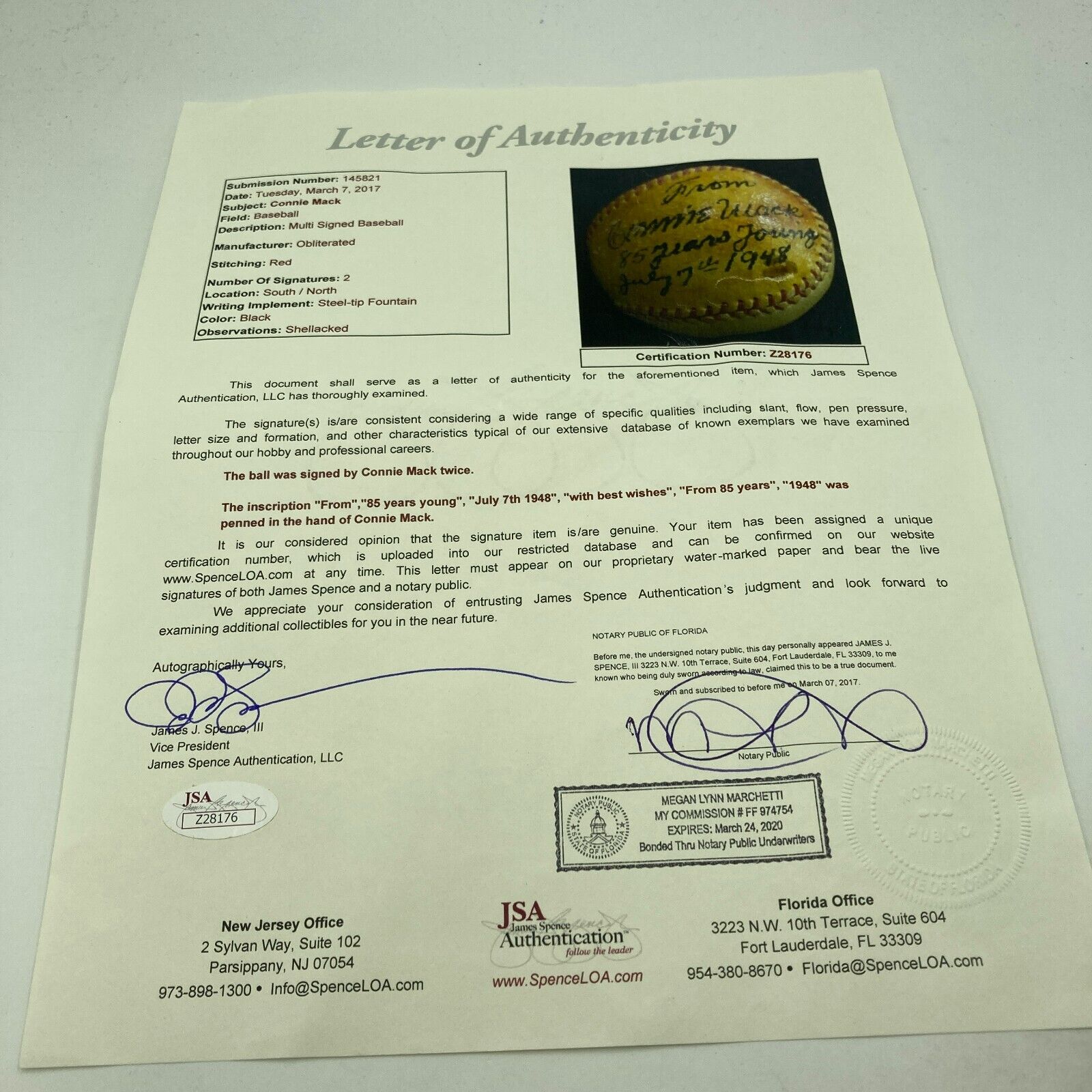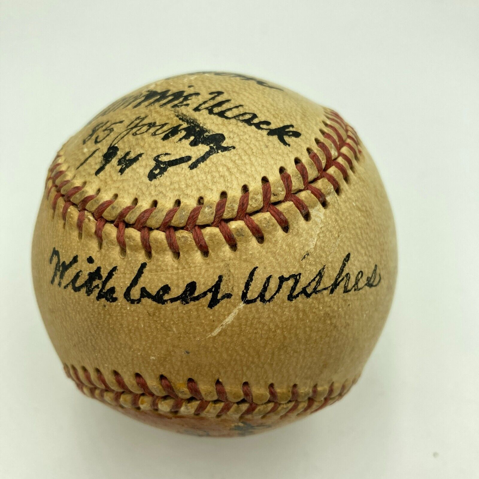 Connie Mack "85 Years Young 1948" Single Signed Baseball JSA COA
