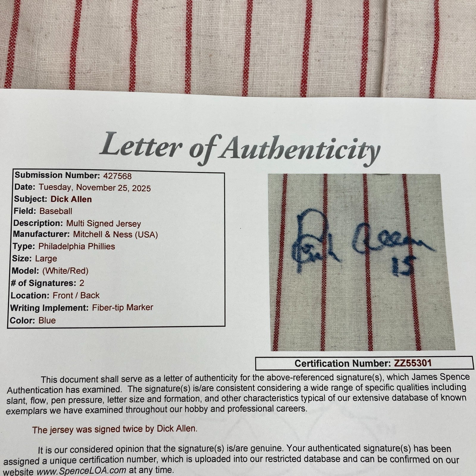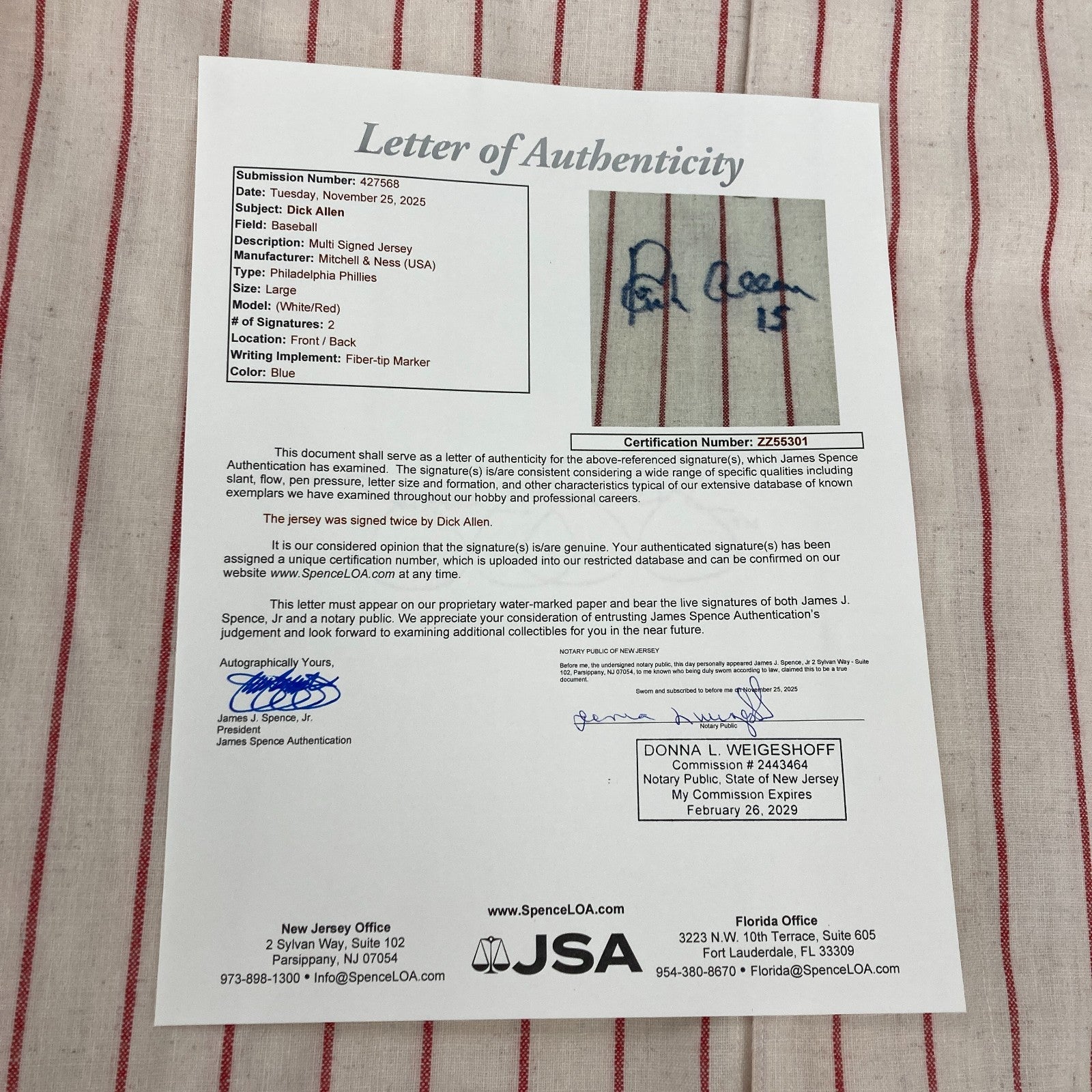 Click or scroll to zoom Tap or pinch to zoom Click or scroll to zoom Tap or pinch to zoom Click or scroll to zoom Tap or pinch to zoom Click or scroll to zoom Tap or pinch to zoom Click or scroll to zoom Tap or pinch to zoom Click or scroll to zoom Tap or pinch to zoom Click or scroll to zoom Tap or pinch to zoom Click or scroll to zoom Tap or pinch to zoom Click or scroll to zoom Tap or pinch to zoom Click or scroll to zoom Tap or pinch to zoom Click or scroll to zoom Tap or pinch to zoom Click or scroll to zoom Tap or pinch to zoom Click or scroll to zoom Tap or pinch to zoom Dick Richie Allen Twice Signed Philadelphia Phillies Mitchell & Ness Jersey JSA $5,995.00 1 2 3 4 5 6 7 8 9 10+ Quantity Quantity Add to cart This item is a recurring or deferred purchase. By continuing, I agree to the cancellation policy and authorize you to charge my payment method at the prices, frequency and dates listed on this page until my order is fulfilled or I cancel, if permitted. Dick Richie Allen Twice Signed Philadelphia Phillies Mitchell & Ness Jersey. He signed the front and the back of the jersey. Comes with full letter JSA COA. T#14
