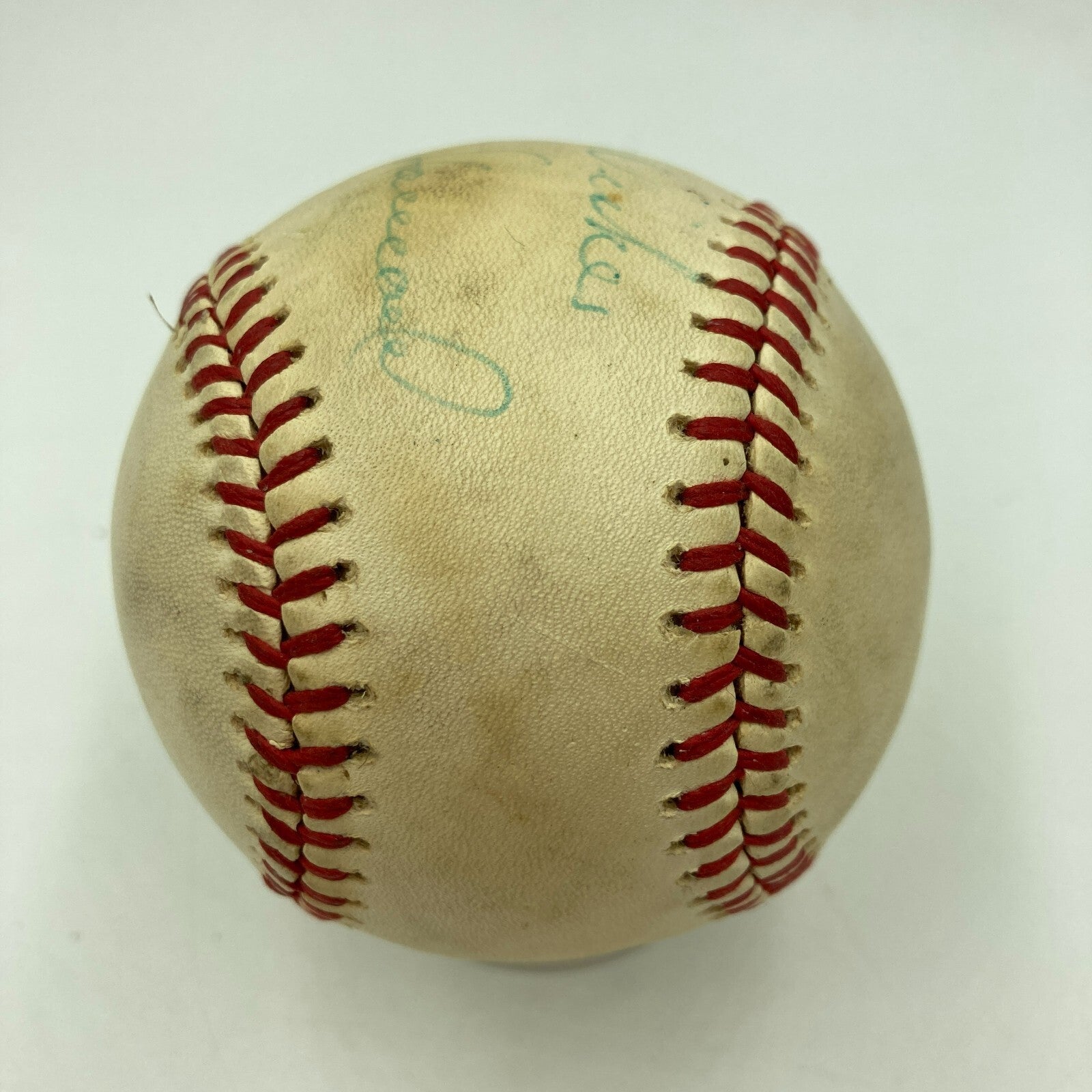 $3,995.00 Rogers Hornsby Gil Hodges Casey Stengel Signed National League Baseball Beckett Rogers Hornsby, Gil Hodges, Casey Stengel Signed 1962 New York Mets National League Baseball With full letter Beckett COA D#A1