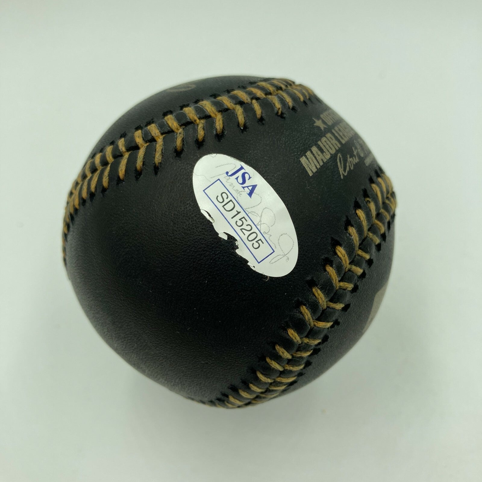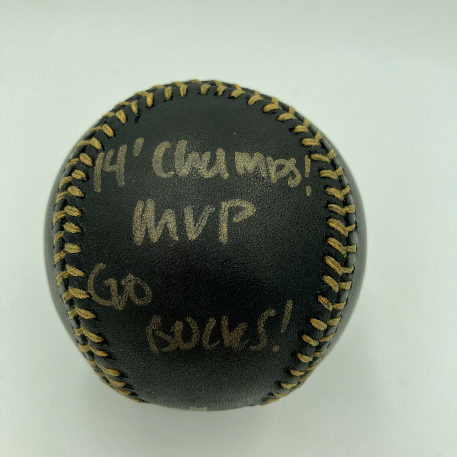 Ezekiel Elliott Single Signed Black Major League Baseball. Sweet Spot: Ezekiel Elliott #15 (5/15) South Panel: '14 Champs, Go Bucks. JSA sticker. Does not have JSA Card.