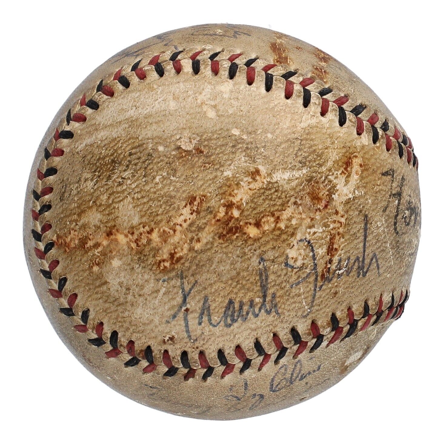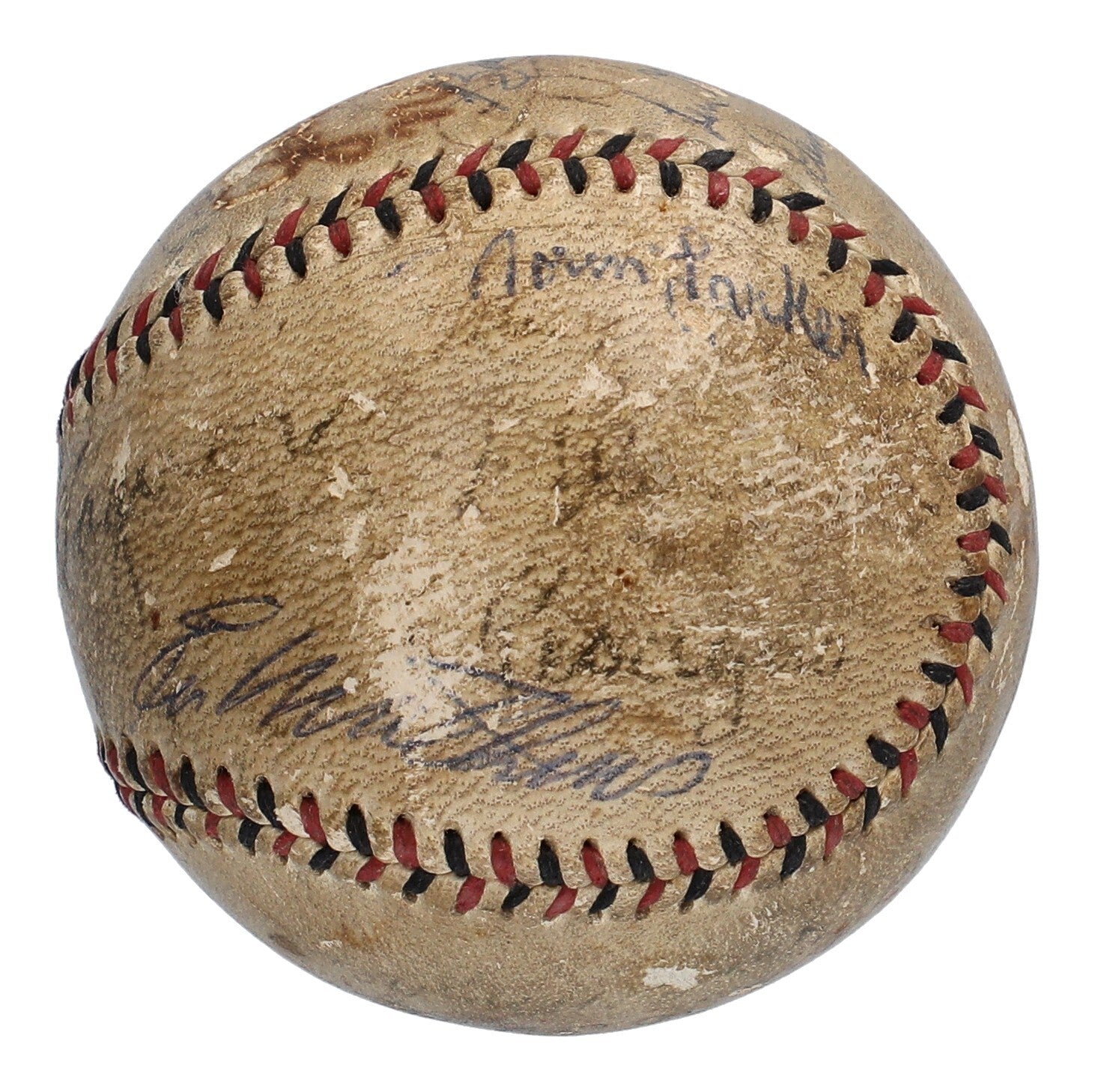 This vintage 1920's baseball contains the signature of Hall of Famer Honus Wagner and 16 members of the 1963 Milwaukee Braves and old timers. Key signatures on the ball include those of Hall of Famers Honus Wagner, Dizzy Dean, Eddie Mathews, with additional signatures from Frank Gustine, Norm Larker, Ty Cline, Dennis Menke, Len Gabrielson and numerous other signatures. Comes with full letter Beckett COA.