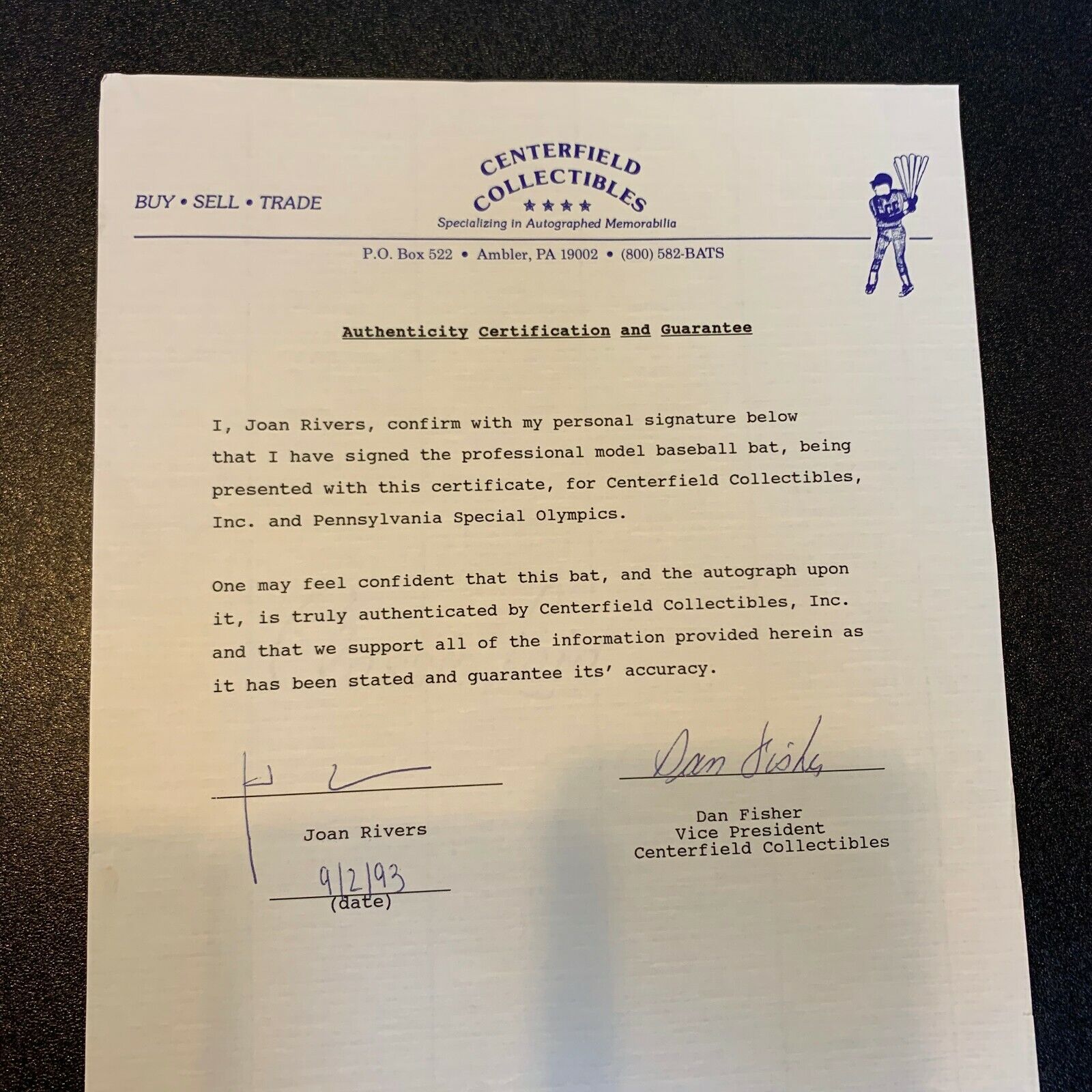 Click or scroll to zoom Tap or pinch to zoom Click or scroll to zoom Tap or pinch to zoom Click or scroll to zoom Tap or pinch to zoom Click or scroll to zoom Tap or pinch to zoom Click or scroll to zoom Tap or pinch to zoom Click or scroll to zoom Tap or pinch to zoom Click or scroll to zoom Tap or pinch to zoom Click or scroll to zoom Tap or pinch to zoom Click or scroll to zoom Tap or pinch to zoom Joan Rivers Signed Personal Model Baseball Bat With JSA COA & Signed Letter $599.00 1 2 3 4 5 6 7 8 9 10+ Quantity Quantity Add to cart This item is a recurring or deferred purchase. By continuing, I agree to the cancellation policy and authorize you to charge my payment method at the prices, frequency and dates listed on this page until my order is fulfilled or I cancel, if permitted. Joan Rivers Signed Personal Model Baseball Bat With JSA COA & Signed Letter #4629124 Bat Bin #8