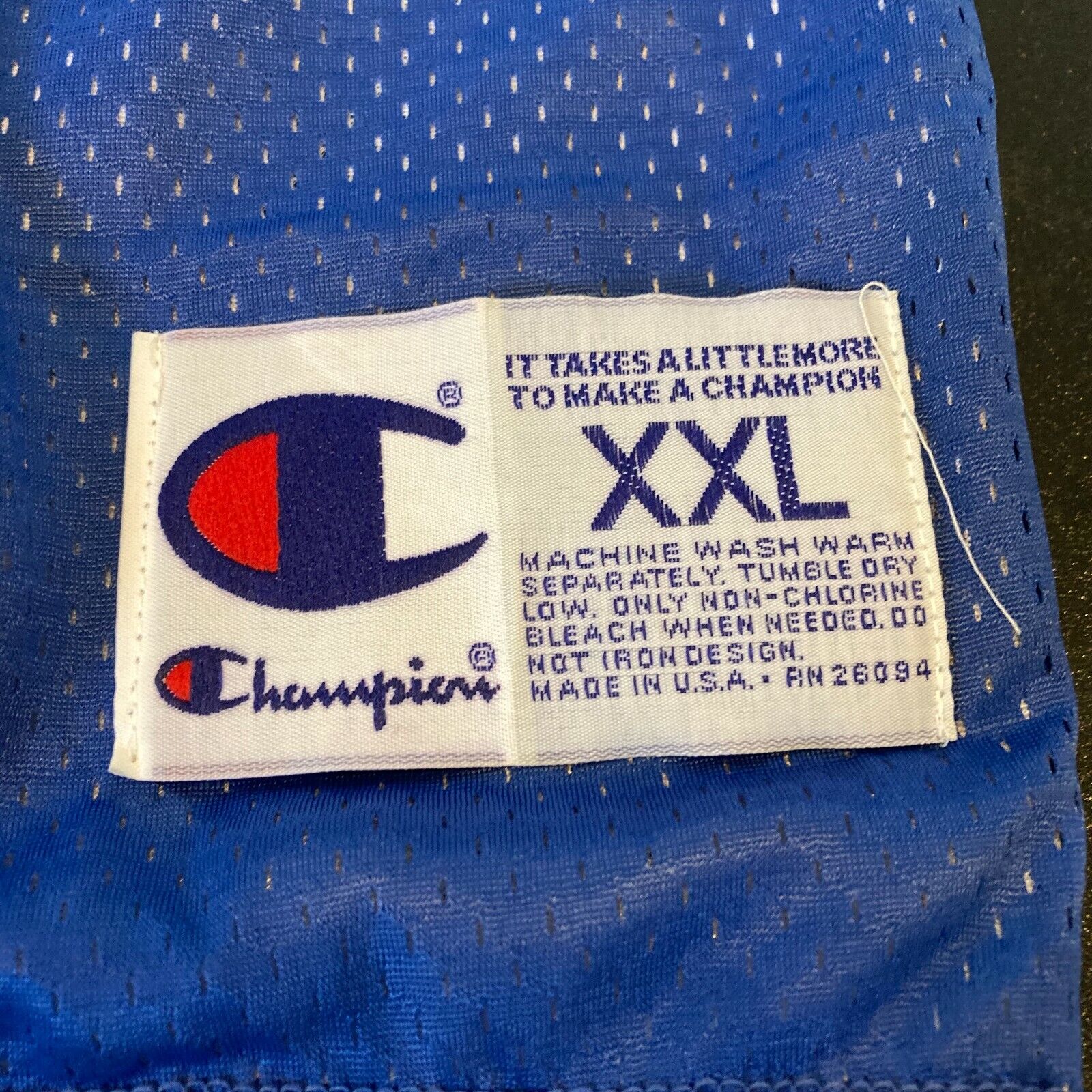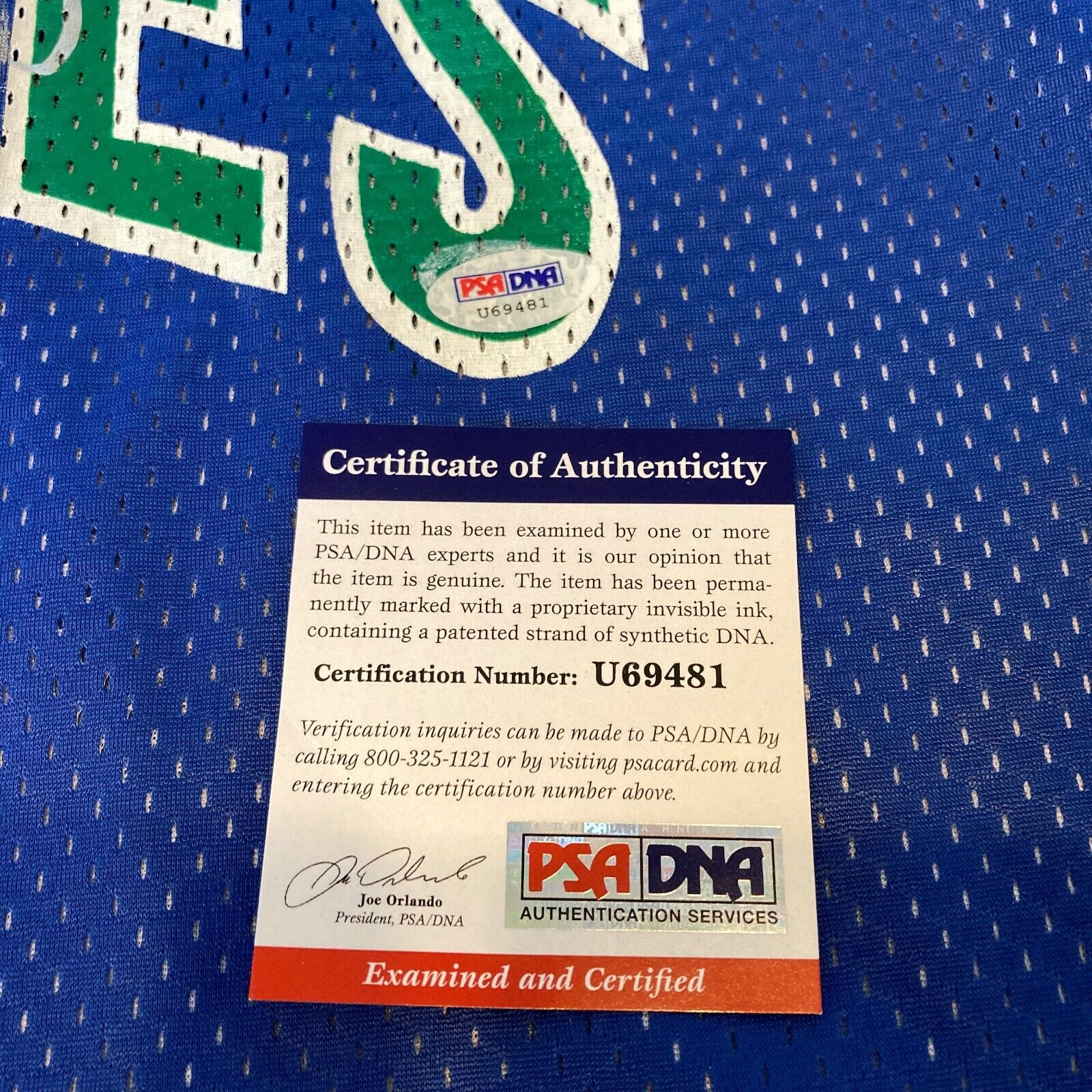 Future Hall of Famer Kevin Garnett is the Minnesota Timberwolves all-time leading scorer. On the front left tail is the Champion manufacturers tag size “XXL” with washing instructions. On the upper left chest is the official “NBA” logo as well as a Champion logo. Across the chest is “WOLVES” in alternating colors on the reversible jersey. Garnett signed the front of the blue side in silver marker. This practice jersey is properly tagged, and shows use. Accompanied by a PSA/DNA COA and Grey Flannel COA.