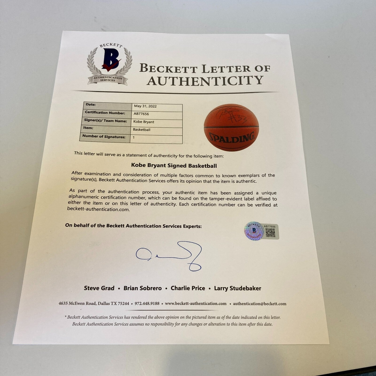 Presented is a Spalding NBA leather game model basketball that has been beautifully hand signed in black felt tip marker by a teenage Kobe Bryant, who signed the basketball while in high school as he penned "#33" along with his name. A terrific pre-rookie example of Kobe's coveted scripting! In excellent condition. Accompanied by a full Letter of Authenticity from Beckett Authentication Services (BAS).