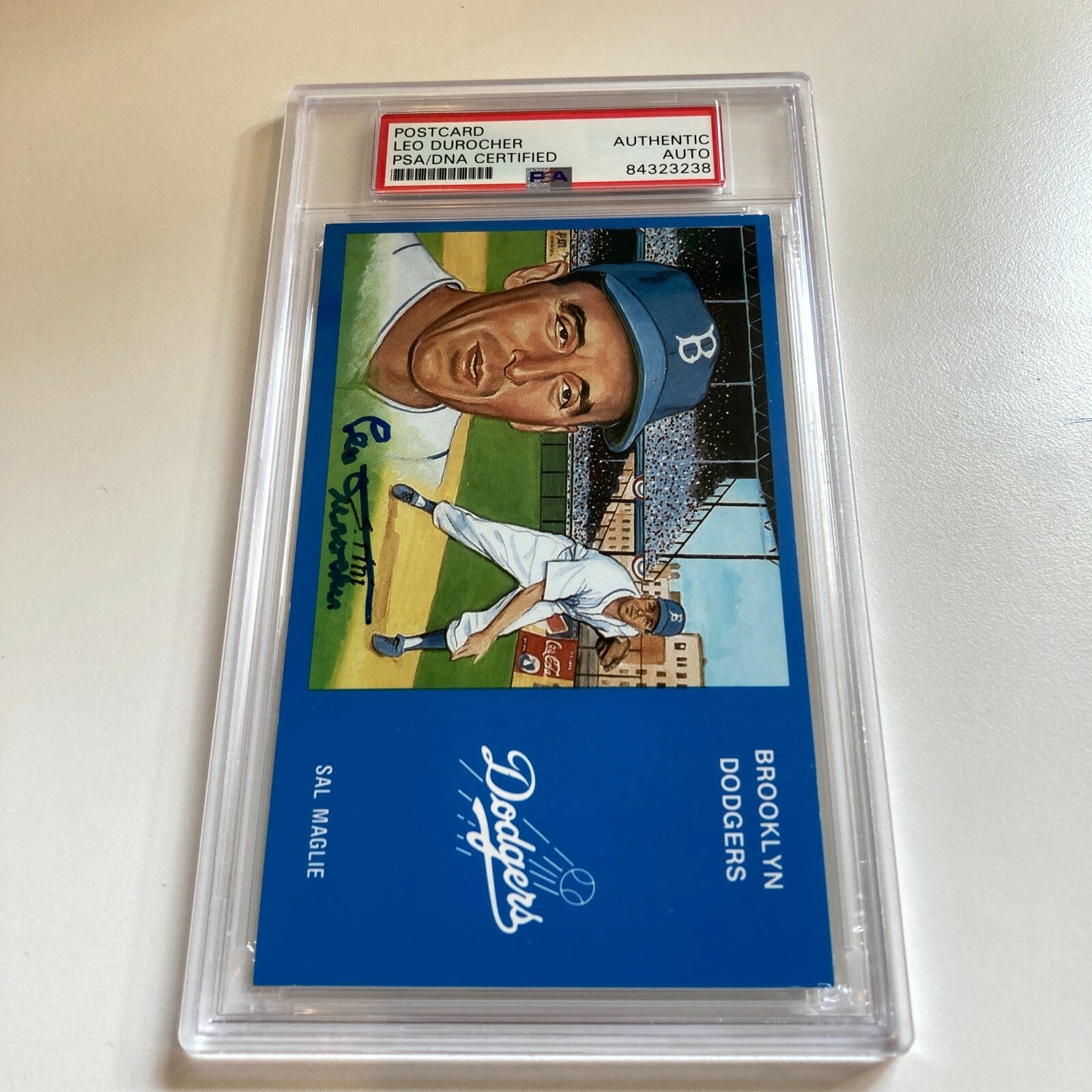 Leo Durocher Signed Autographed Brooklyn Dodgers Postcard PSA DNA
