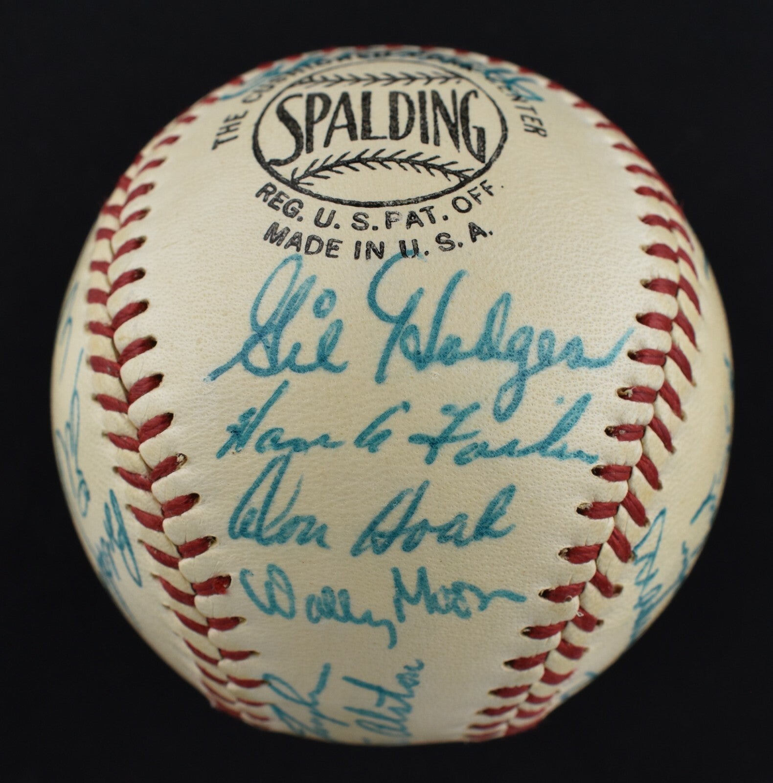 Official National League Warren Giles baseball signed by 26 members of the 1957 National League All-Star Team. Signatures include: Walt Alston, Stan Musial, Warren Spahn, Ernie Banks, Eddie Mathews, Lou Burdette and Gil Hodges and many others.