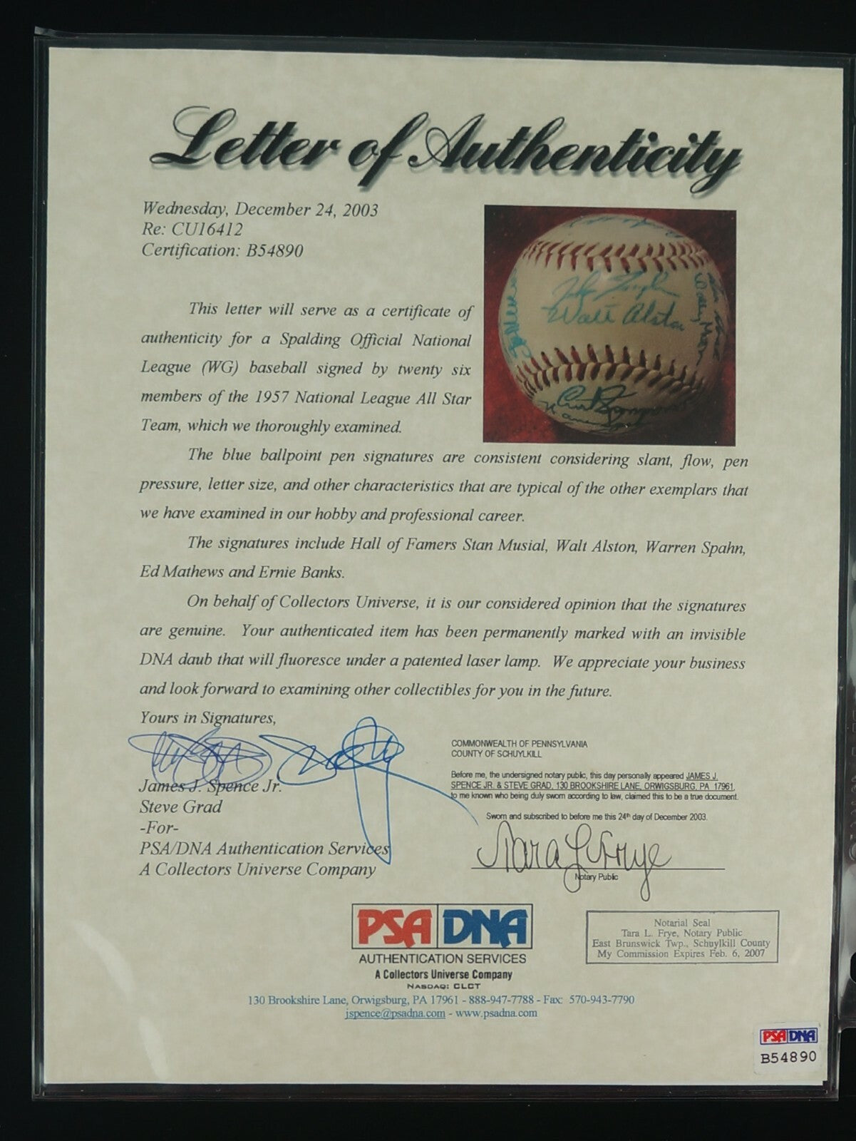 Mint 1957 All Star Game Team Signed Baseball Stan Musial Ernie Banks PSA DNA COA