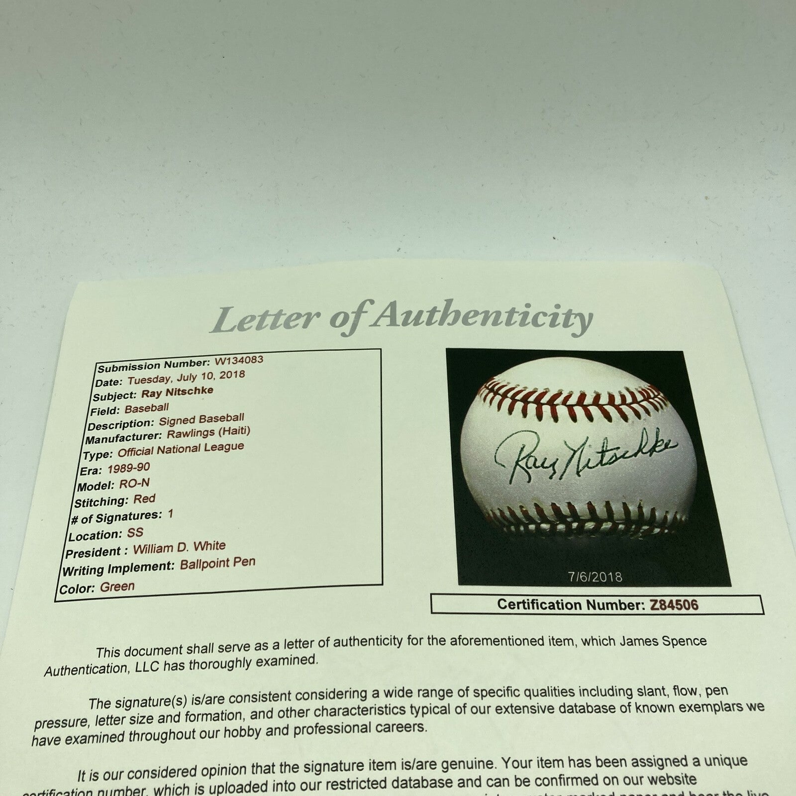 Ray Nitschke Signed Autographed Official National League Baseball JSA COA