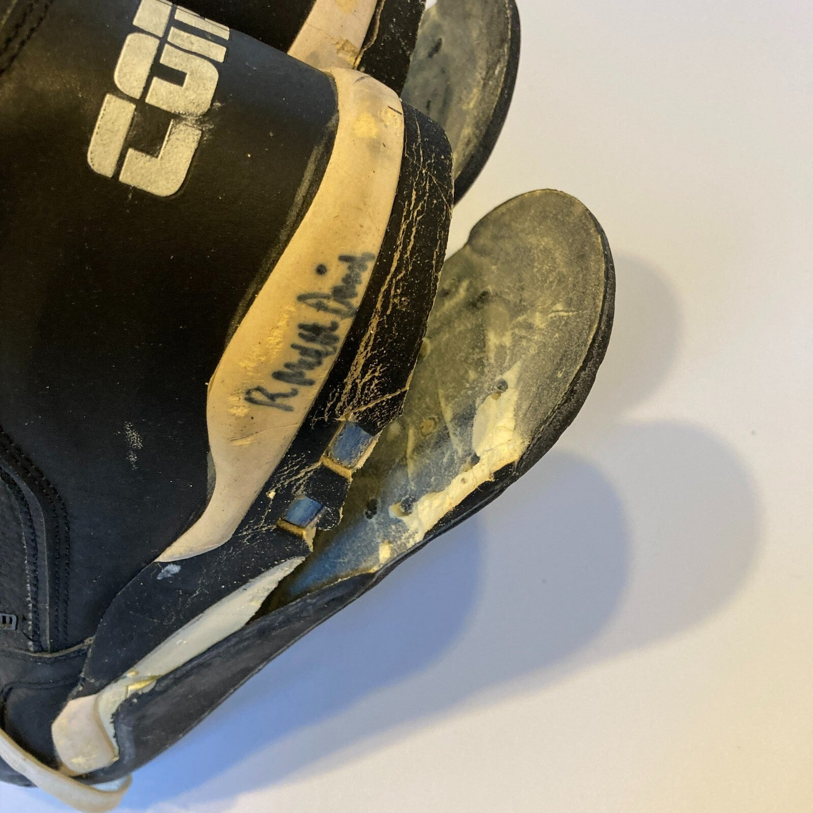 Robert Parish signed game used basketball shoes. Converse "Wave Conquest" signed 16 shoes both signed by Parish in blue marker. Both soles are starting to peel, with one peeling more than the other: