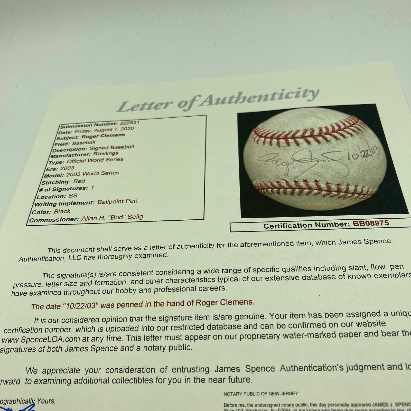 Roger Clemens 2003 World Series Game 4 Game Used Signed Baseball JSA COA MLB Authentic Hologram.
