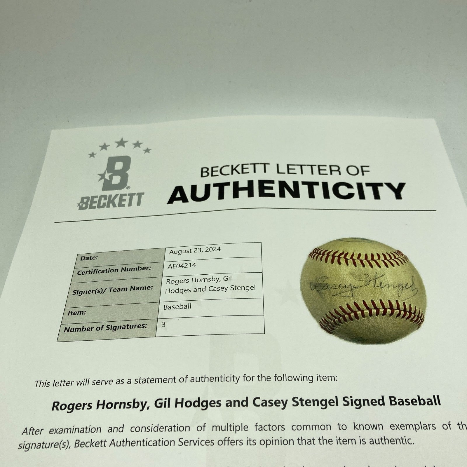 Rogers Hornsby, Gil Hodges, Casey Stengel Signed 1962 New York Mets National League Baseball With full letter Beckett COA