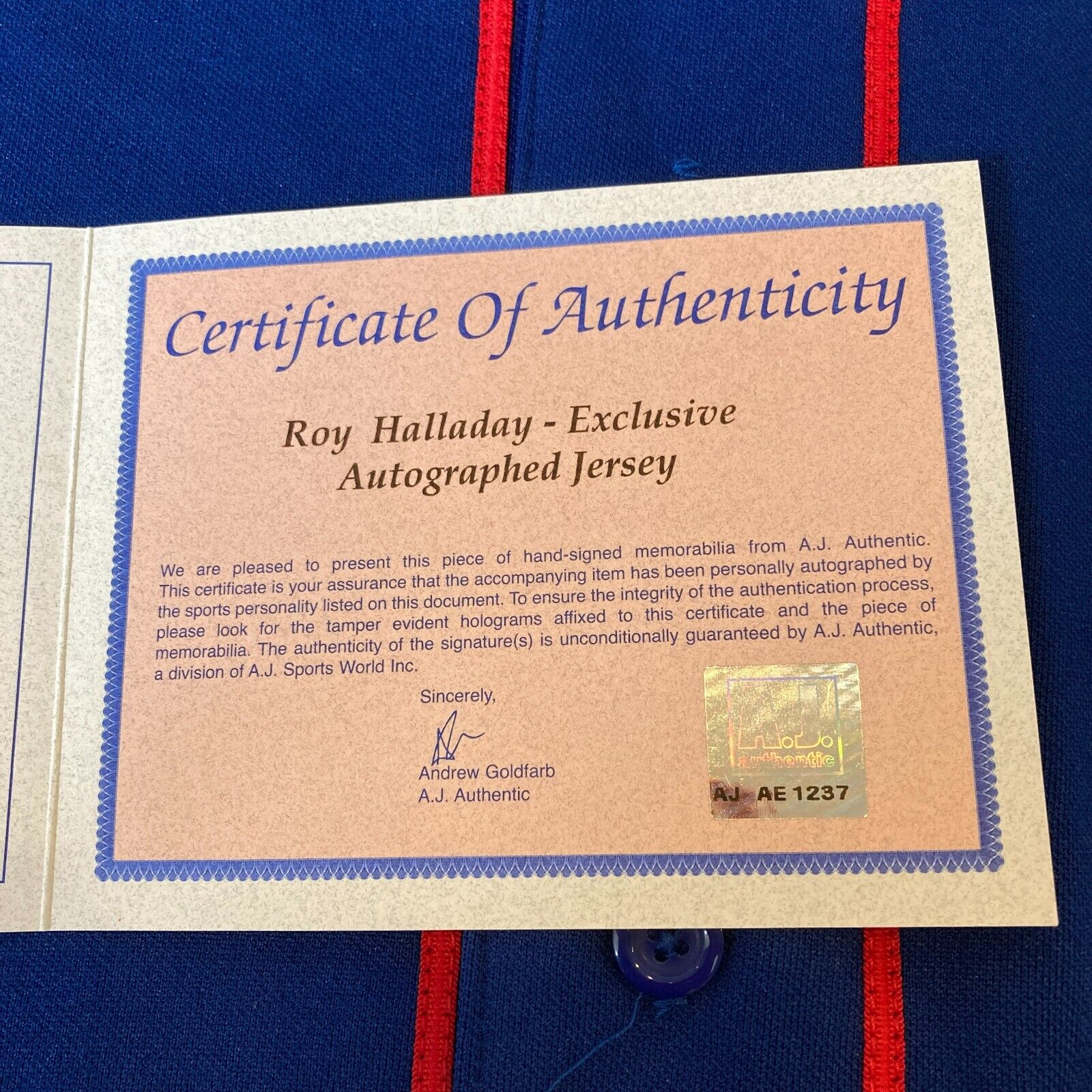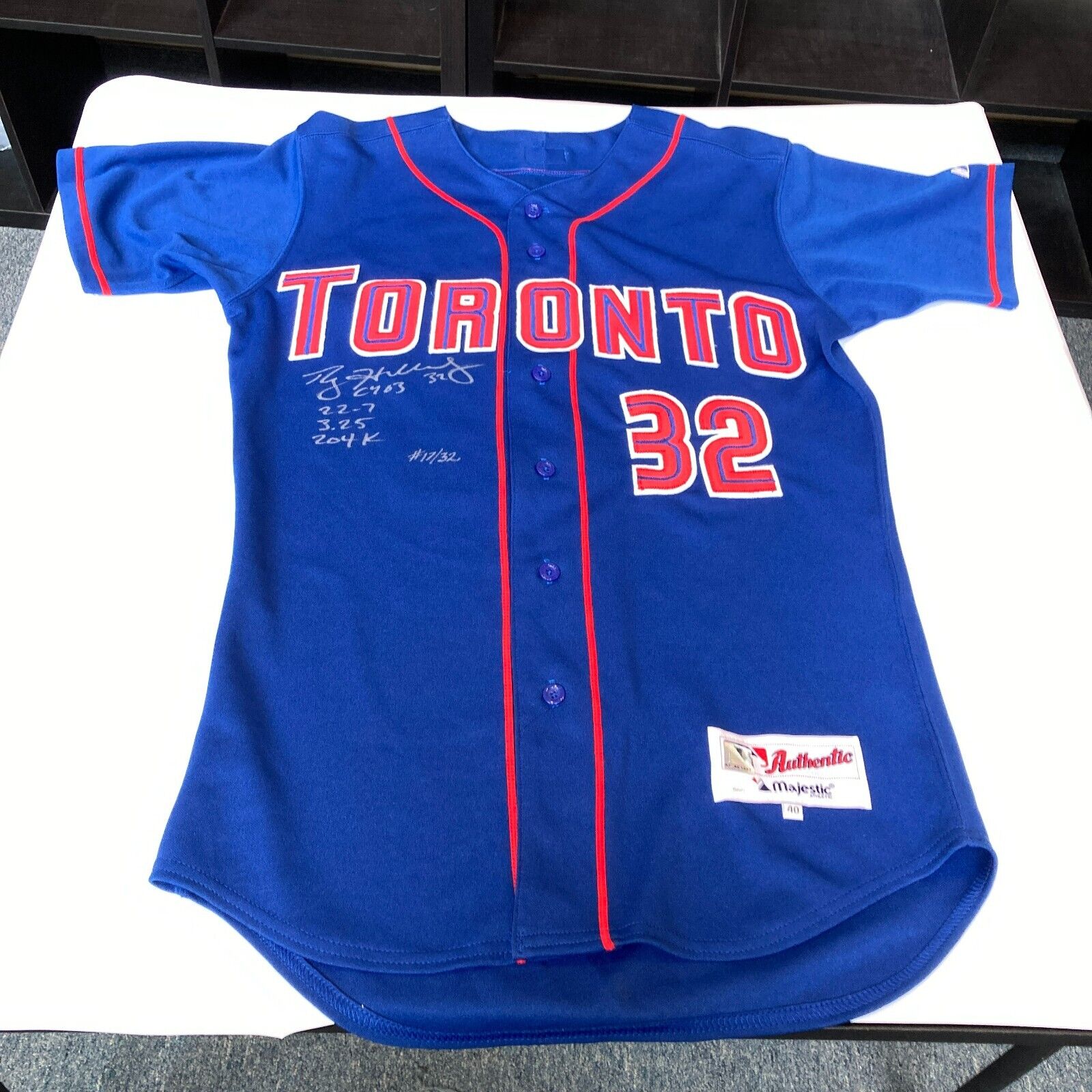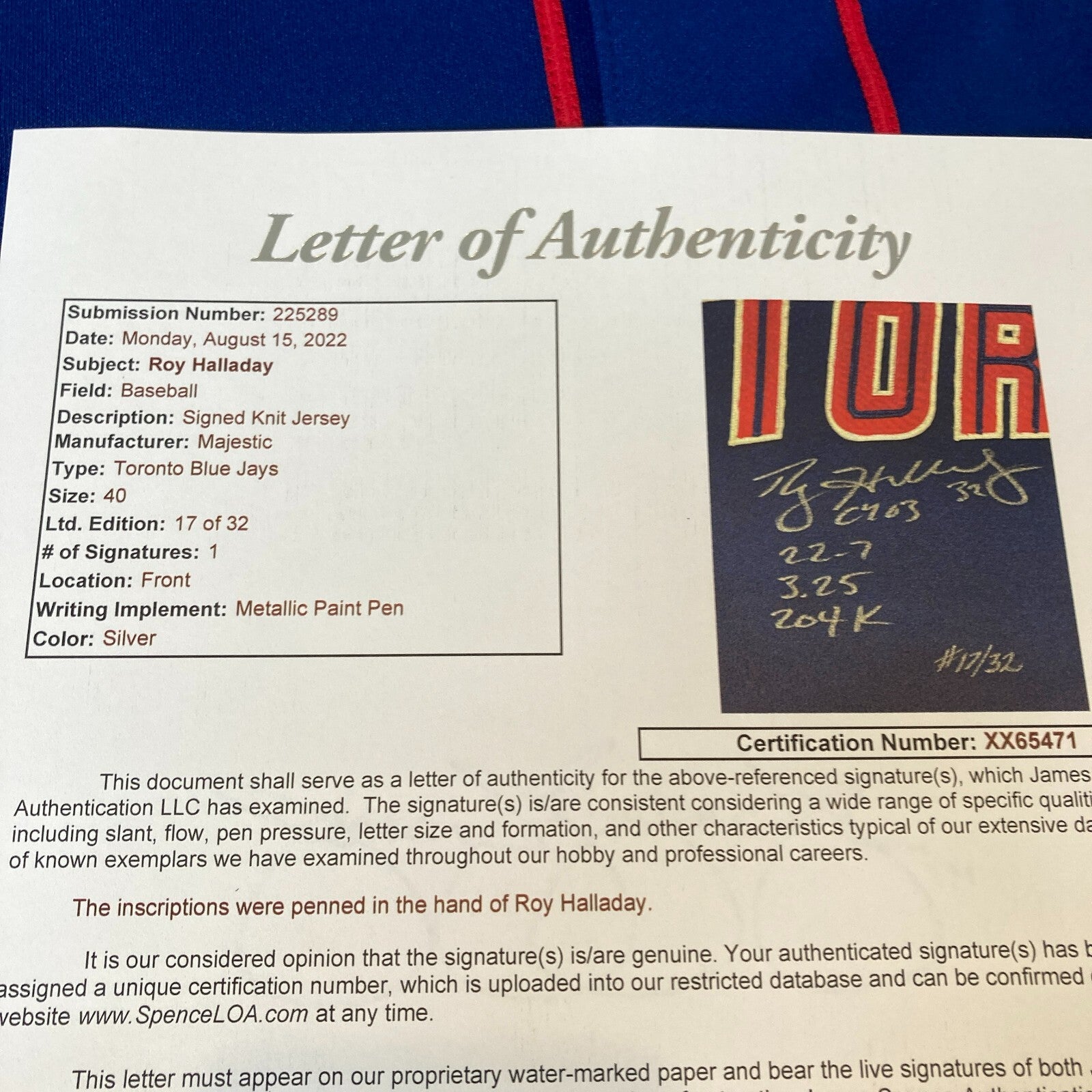 Stunning Roy Halladay Signed Heavily Inscribed Authentic Game Model Toronto Blue Jays STAT Jersey. #17/32