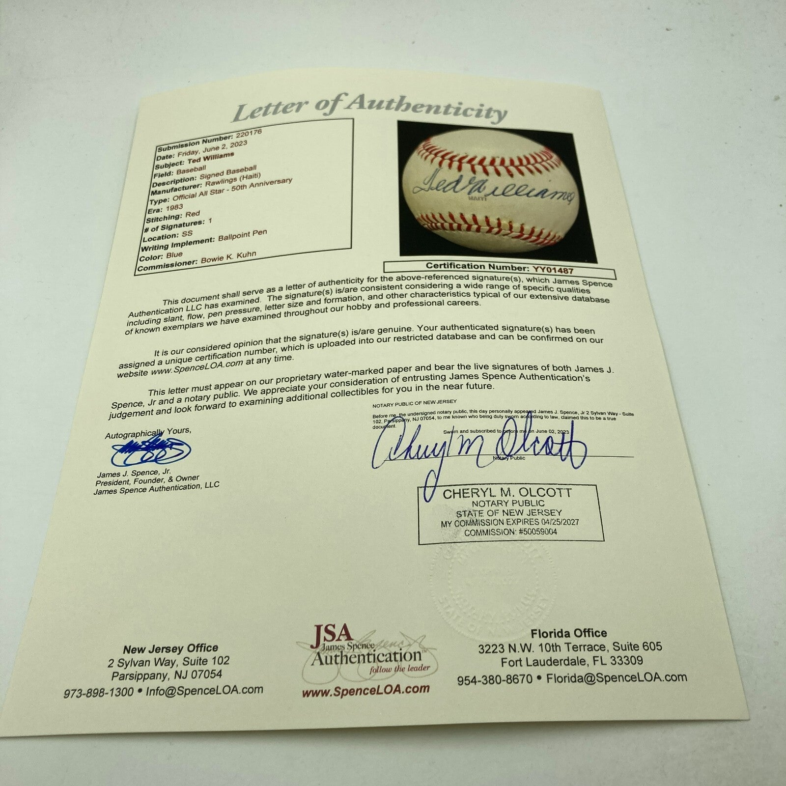 Click or scroll to zoom Tap or pinch to zoom Click or scroll to zoom Tap or pinch to zoom Click or scroll to zoom Tap or pinch to zoom Click or scroll to zoom Tap or pinch to zoom Click or scroll to zoom Tap or pinch to zoom Ted Williams Signed Official 1983 All Star Game Signed Baseball JSA COA $599.00 1 2 3 4 5 6 7 8 9 10+ Quantity Quantity Add to cart This item is a recurring or deferred purchase. By continuing, I agree to the cancellation policy and authorize you to charge my payment method at the prices, frequency and dates listed on this page until my order is fulfilled or I cancel, if permitted. Ted Williams Signed Official 1983 All Star Game Signed Baseball. Comes with full letter JSA COA. D#19