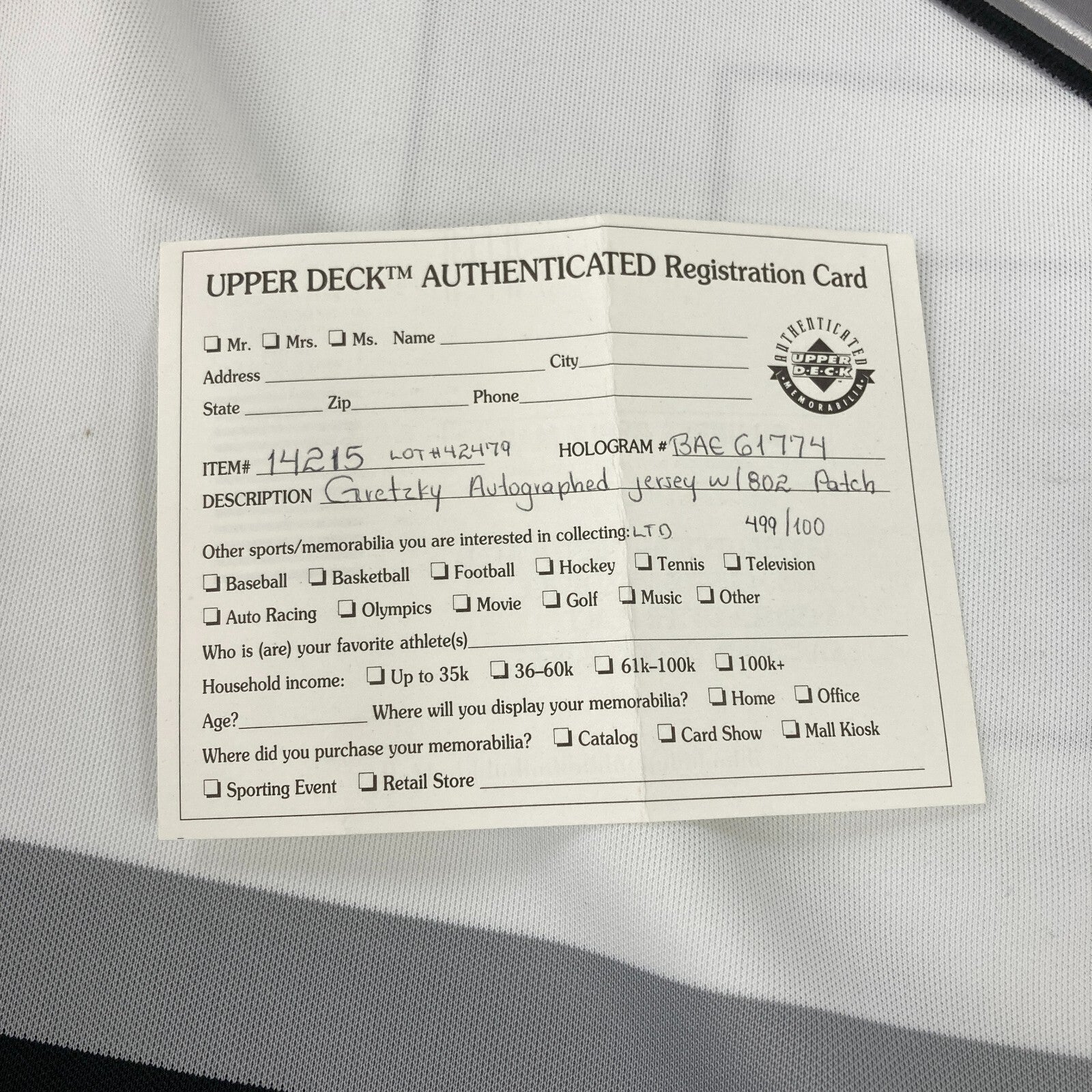 $1,995.00 Wayne Gretzky Signed 1994 Authentic "Ninety-Nine" Tour Jersey Beckett COA 1994 Wayne Gretzky Signed "Ninety-Nine" Jersey. Presented is a rare "Ninety-Nine" jersey from Gretzky's 1994 tour that he signed in black sharpie.... View full details