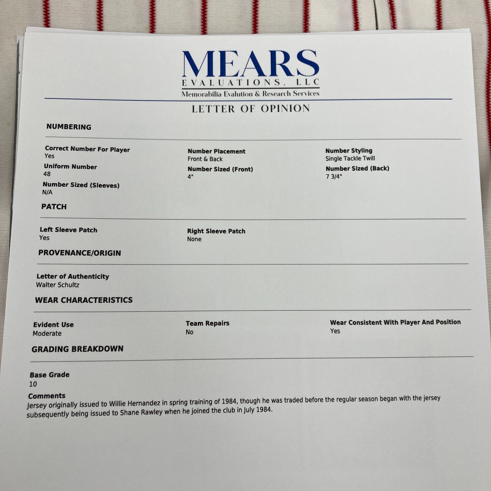 The Finest Willie Hernandez Shane Rawley Rookie Debut Game Used Philadelphia Phillies Jersey MEARS A10