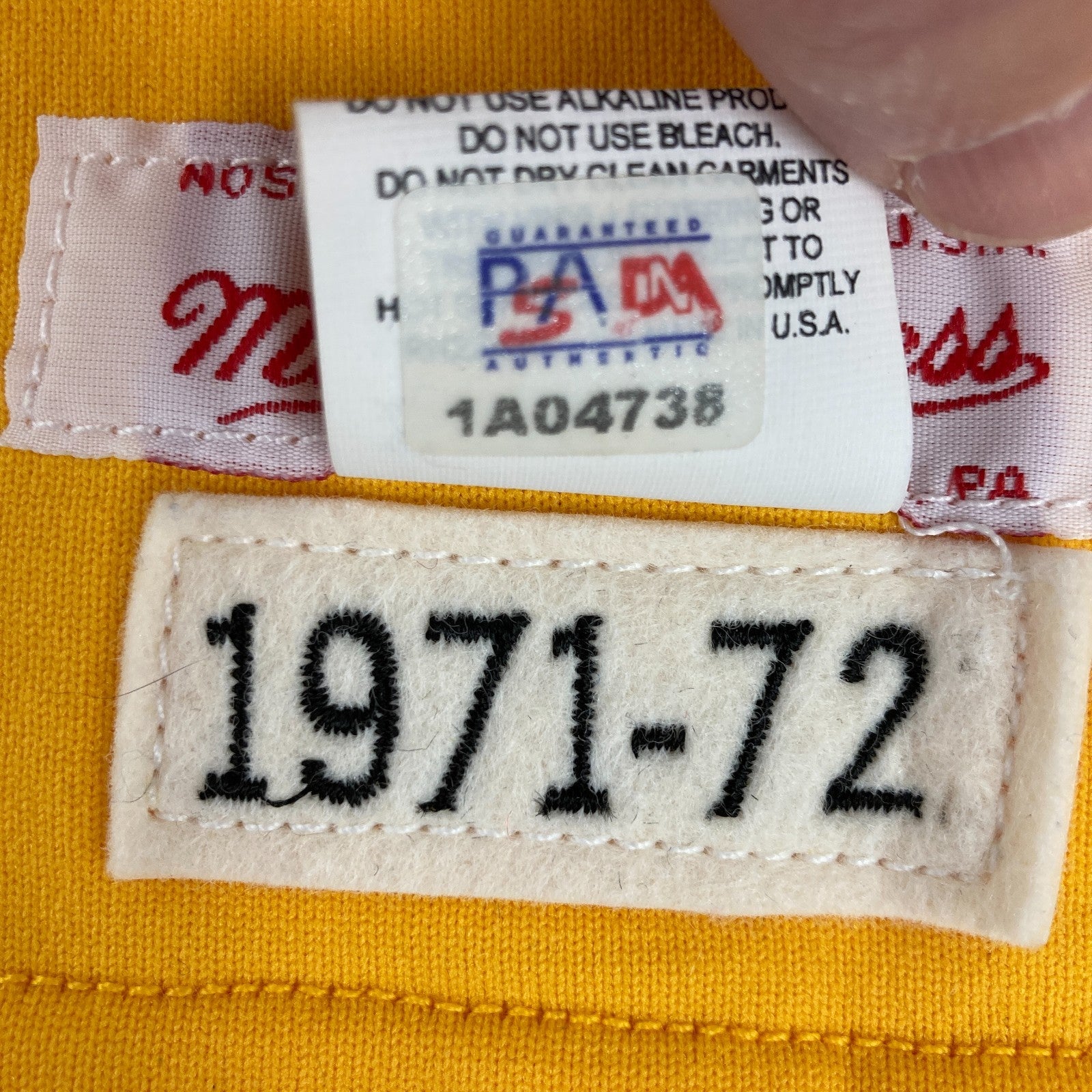 Beautiful Los Angeles Lakers multi signed authentic 1971-72 Mitchell & Ness size 48 jersey.