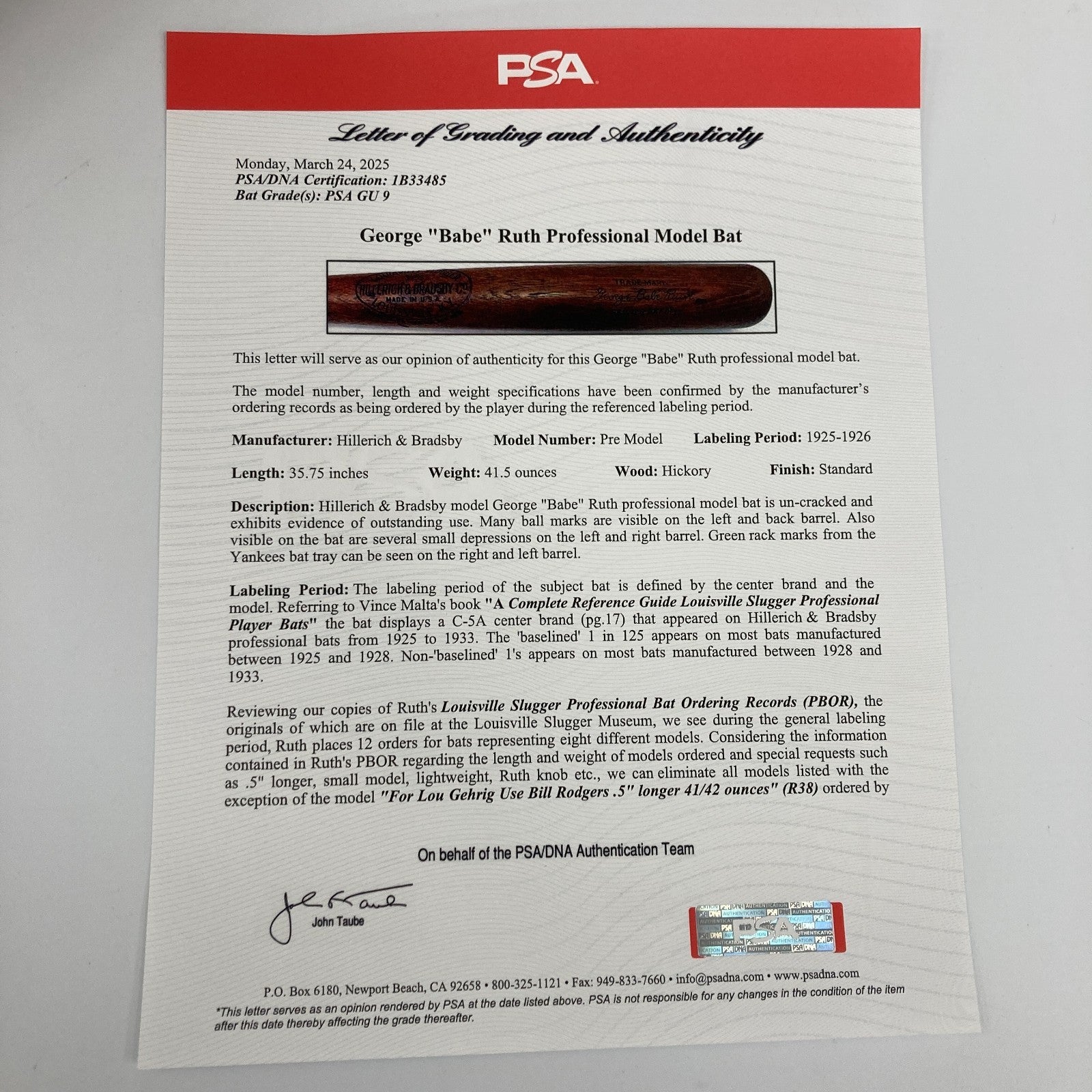 Extraordinary 1925-26 Babe Ruth H&B Louisville Slugger Professional Model Hickory Game Used Bat.