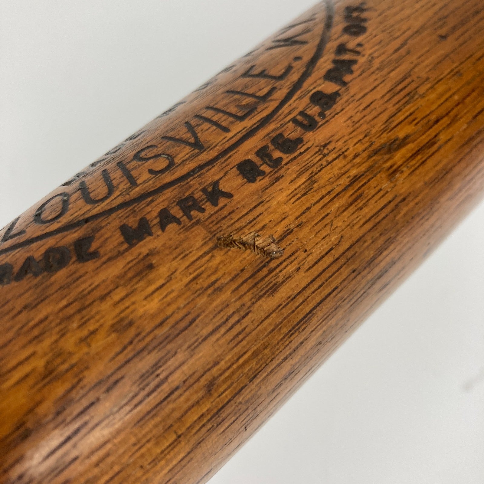 Bat is dated to 1925-26 based on the center brand design and the model number documented as being ordered in 1925 with use consistent with multiple seasons which dates the bat through 1926 and possibly beyond.
