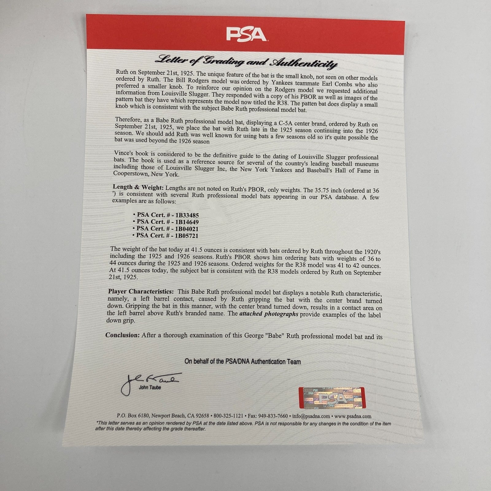 The PSA letter notes that "Ruth was well known for using bats a few seasons old so it's quite possible the bat was used beyond the 1926 season" (During his historic 1927 season).
