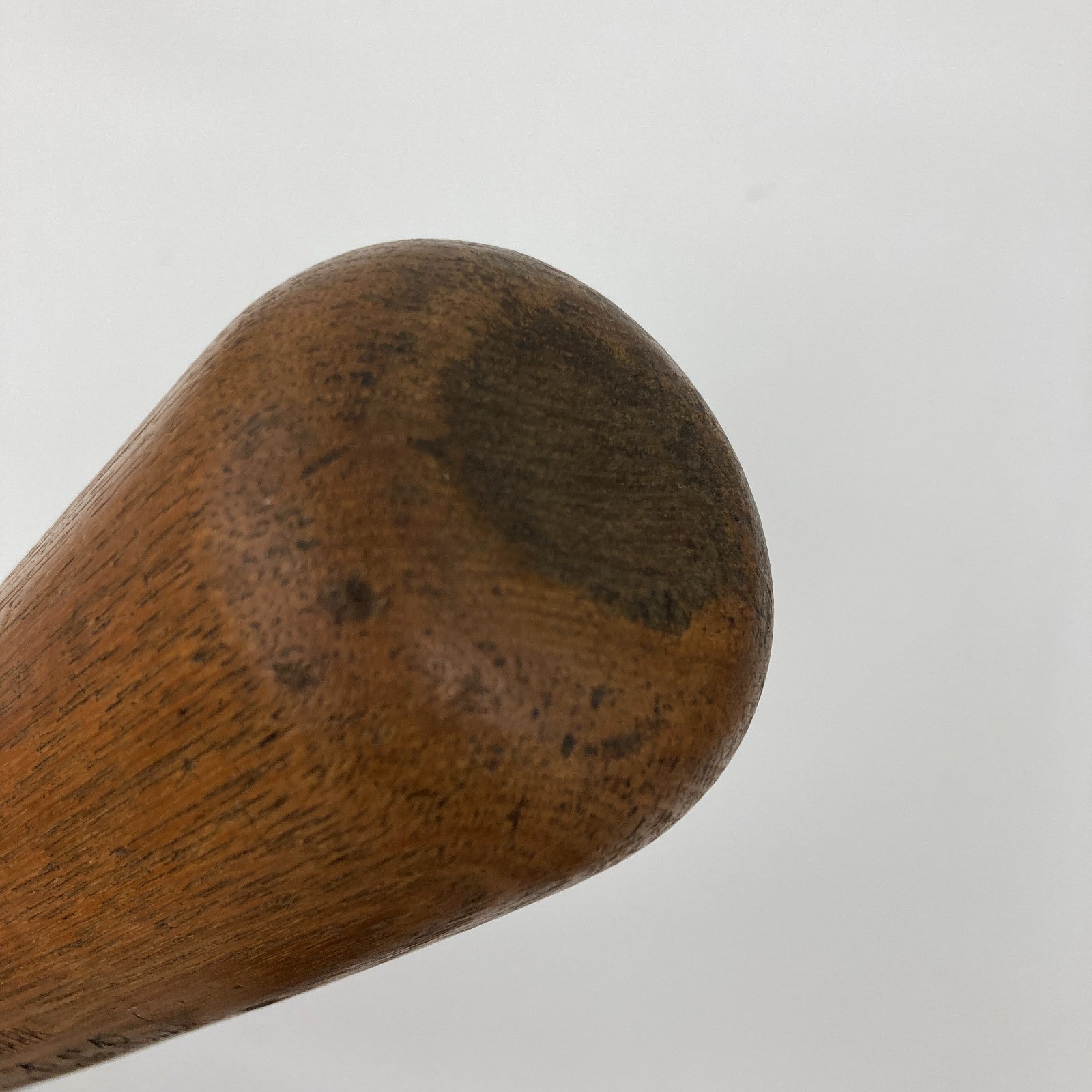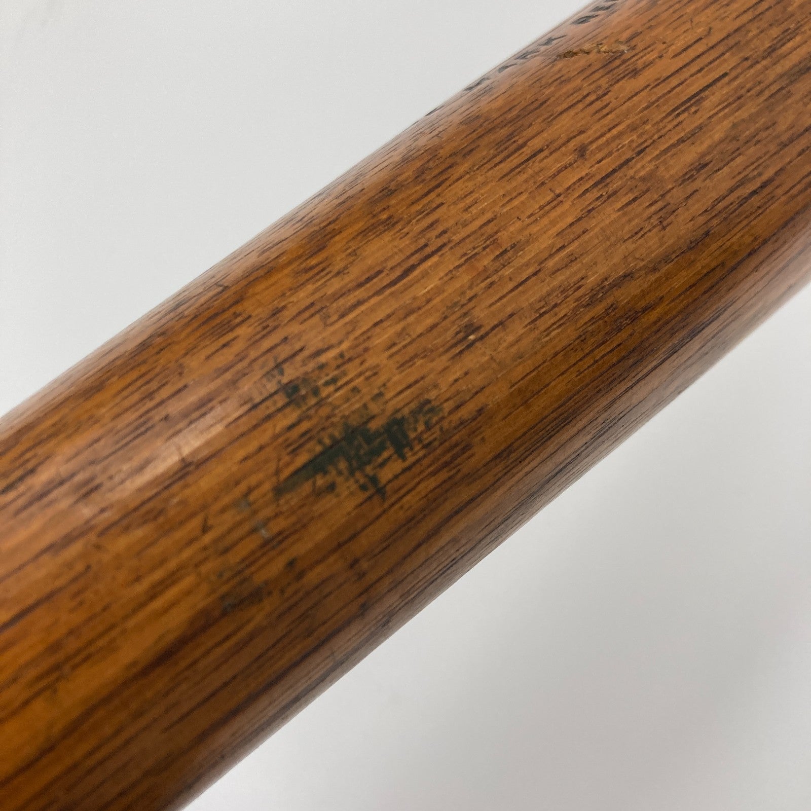 Bat measure 35.75”, weighs 41.5 ounces, made from hickory (rare), with a standard finish.