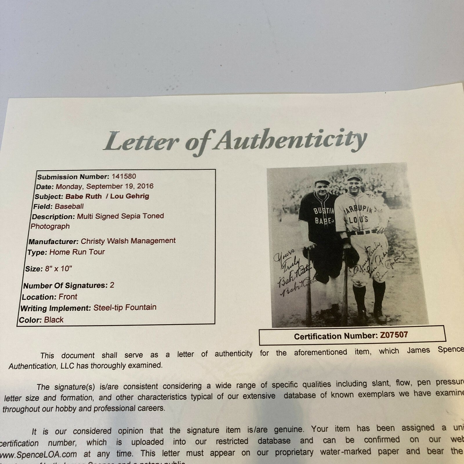 Click or scroll to zoom Tap or pinch to zoom Click or scroll to zoom Tap or pinch to zoom Click or scroll to zoom Tap or pinch to zoom Click or scroll to zoom Tap or pinch to zoom Click or scroll to zoom Tap or pinch to zoom Click or scroll to zoom Tap or pinch to zoom Click or scroll to zoom Tap or pinch to zoom The Finest Babe Ruth & Lou Gehrig 1927 Signed Photo In Existence JSA COA $99,995.00 1 2 3 4 5 6 7 8 9 10+ Quantity Quantity Add to cart This item is a recurring or deferred purchase. By continuing, I agree to the cancellation policy and authorize you to charge my payment method at the prices, frequency and dates listed on this page until my order is fulfilled or I cancel, if permitted. The Finest Babe Ruth & Lou Gehrig 1927 Signed Photo In Existence. The photo and signatures are in extraordinary condition. Photograph measures 8x10" in size. Comes with Full letter JSA COA.
