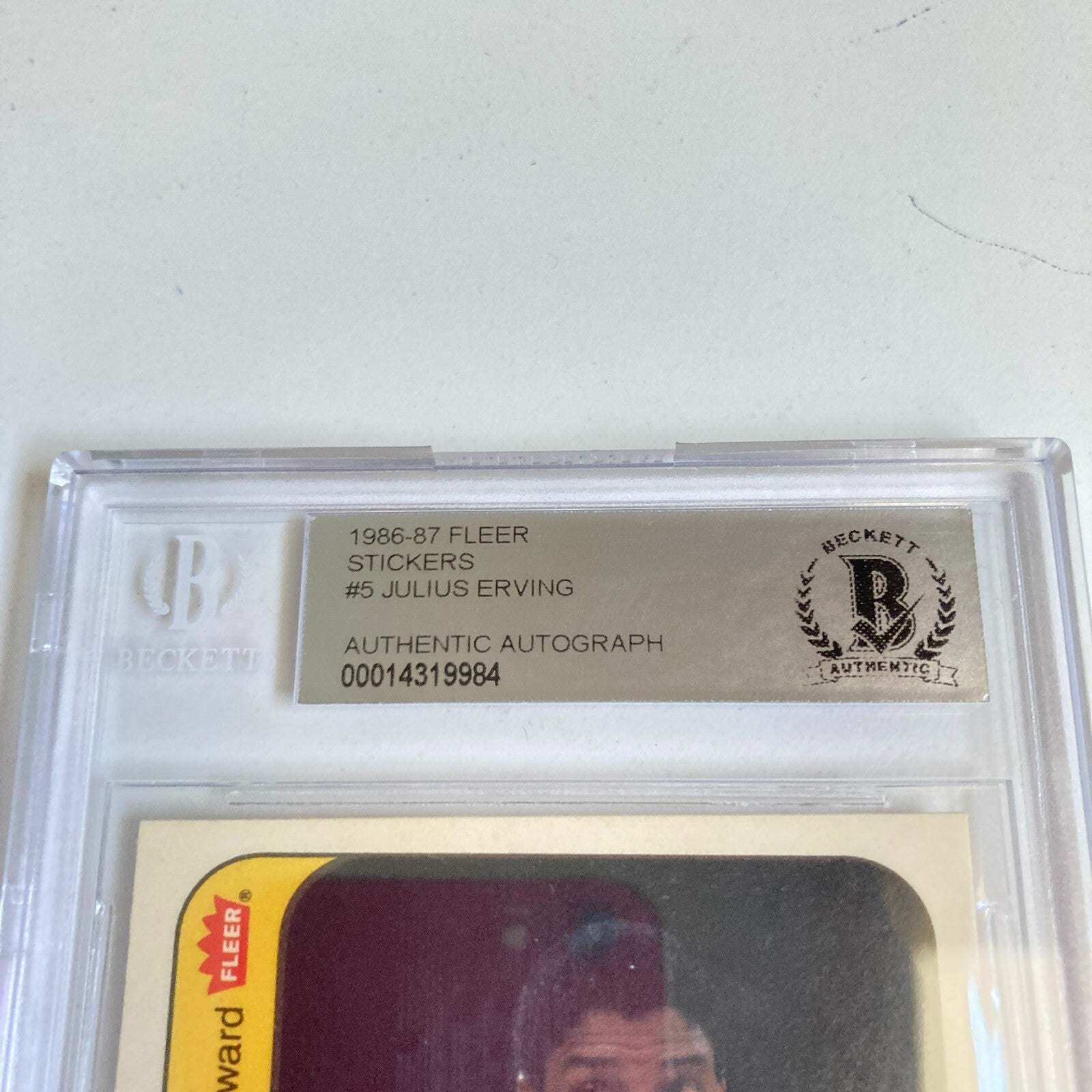 1986-87 Fleer Sticker Julius Erving Dr. J Signed Basketball Card Auto BGS
