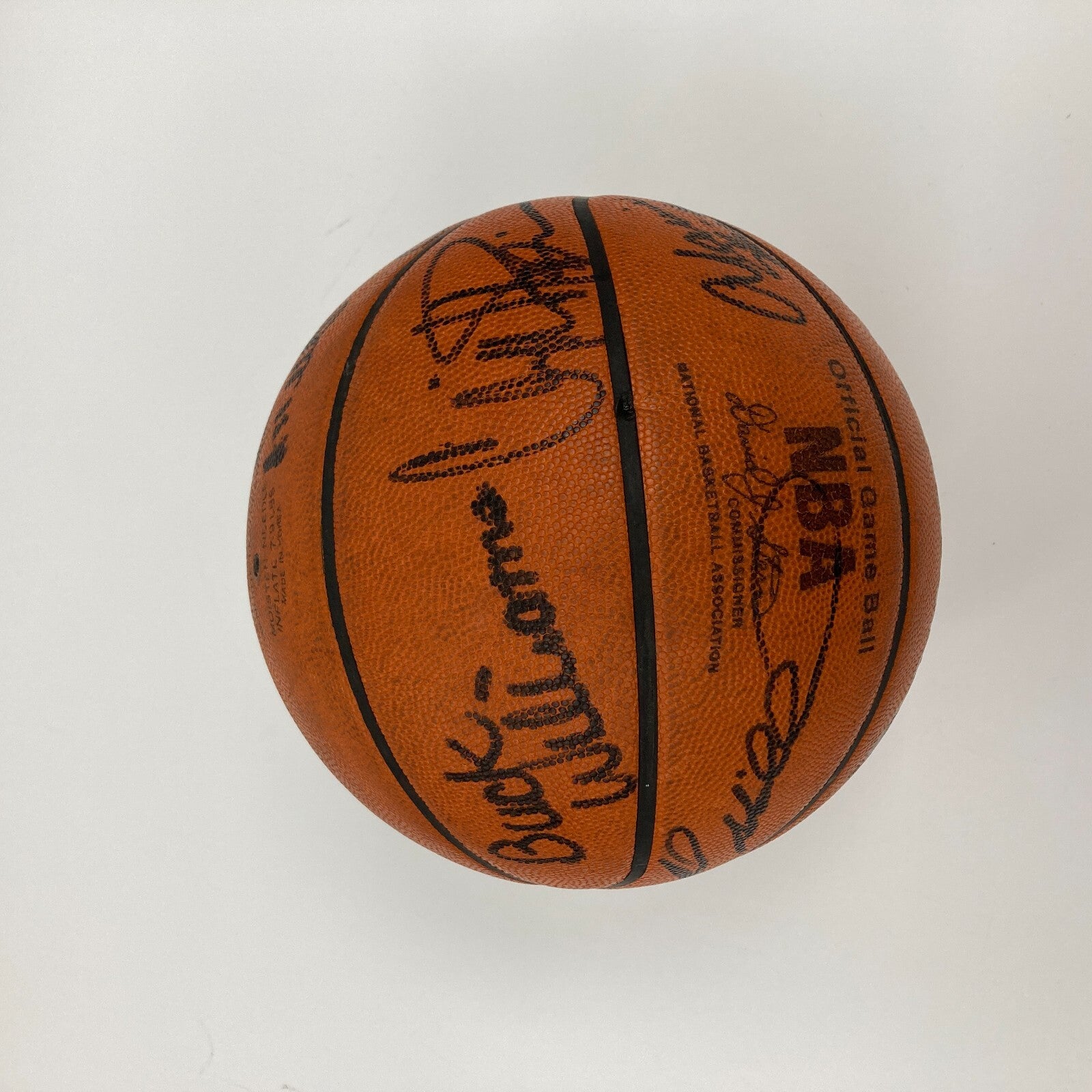 Trail Blazers game ball signed by (9) members of the 1992-93 team: Clyde Drexler, Rod Strickland, Clifford Robinson, Buck Williams, Jerome Kersey, Kevin Duckworth, Mario Elie, Mark Bryant, and Tracy Murray.