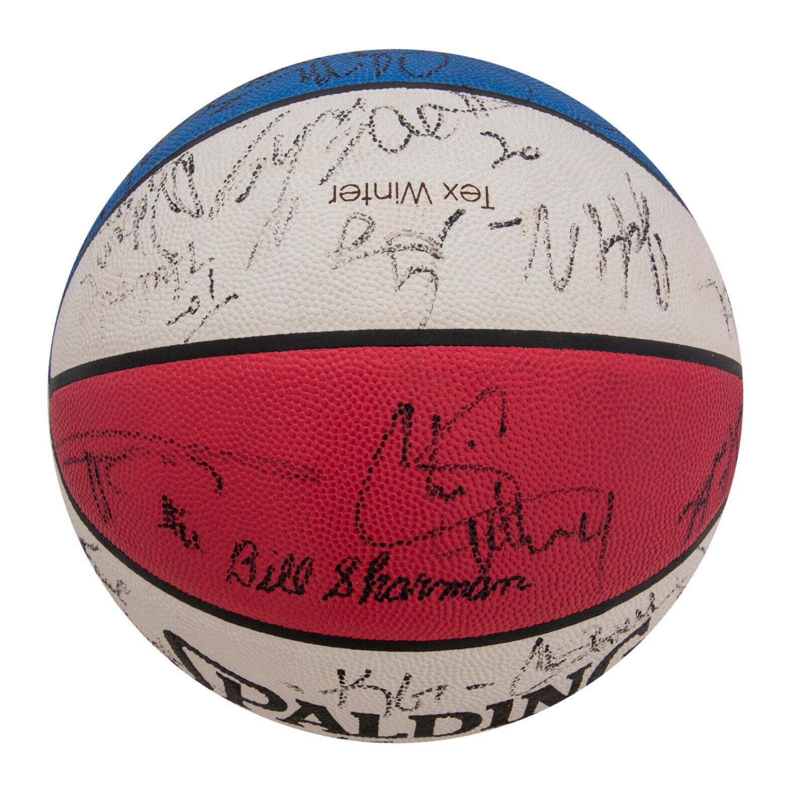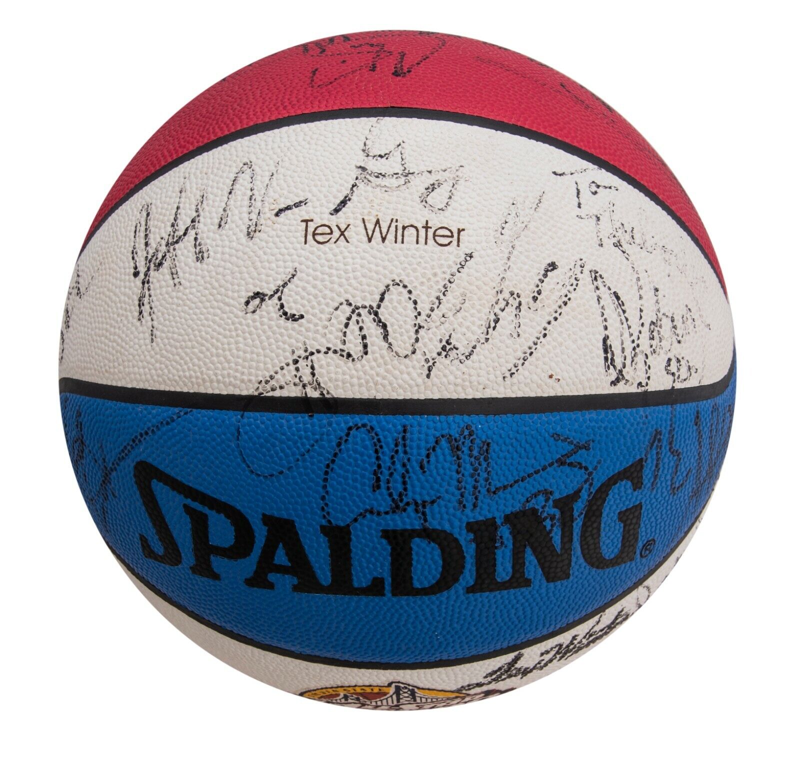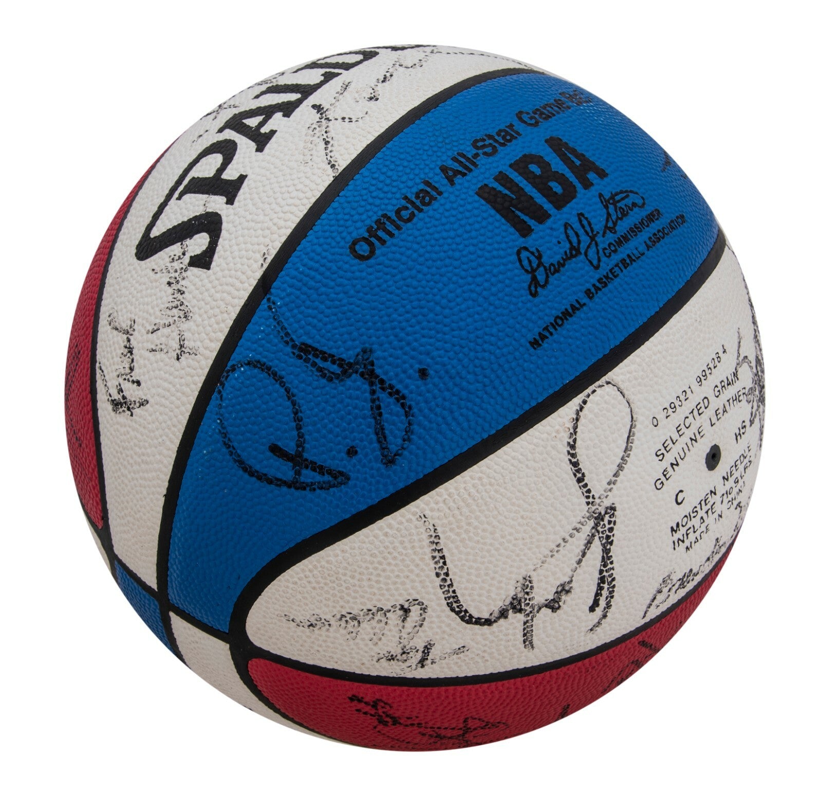 Spalding Official 2000 All Star Game Basketball signed by 30 participants in the 2000 NBA All-Star Game at Oakland Arena in Oakland, California. In a high scoring game, the Western Conference defeated the East by a score of 137-126, with Tim Duncan and Shaquille O’Neal earning co-MVP honors. This offered red, white, and blue basketball has been signed by the Hall of Famers Kobe Bryant, Kevin Garnett, Alonzo Mourning, Shaquille O’Neal, and Tim Duncan, as well as Chris Webber, Jeff Van Gundy, Vince Carter, Tex Winter, Phil Jackson, Cliff Robinson, and several others. The ball is a limited edition 431 of 500. Comes with a LOA from Beckett Authentication Services.