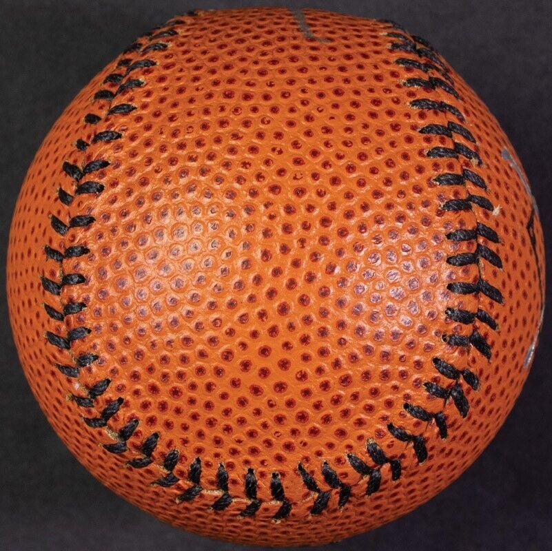 Nike basketball-style baseball signed by the legendary Michael Jordan. Michael Jordan is widely regarded as one of the greatest basketball players of all time, with six NBA championships, five MVP Awards, and numerous other accolades to his name. His brief stint in baseball adds a unique twist to this collectible, making it a rare and intriguing piece of sports history.