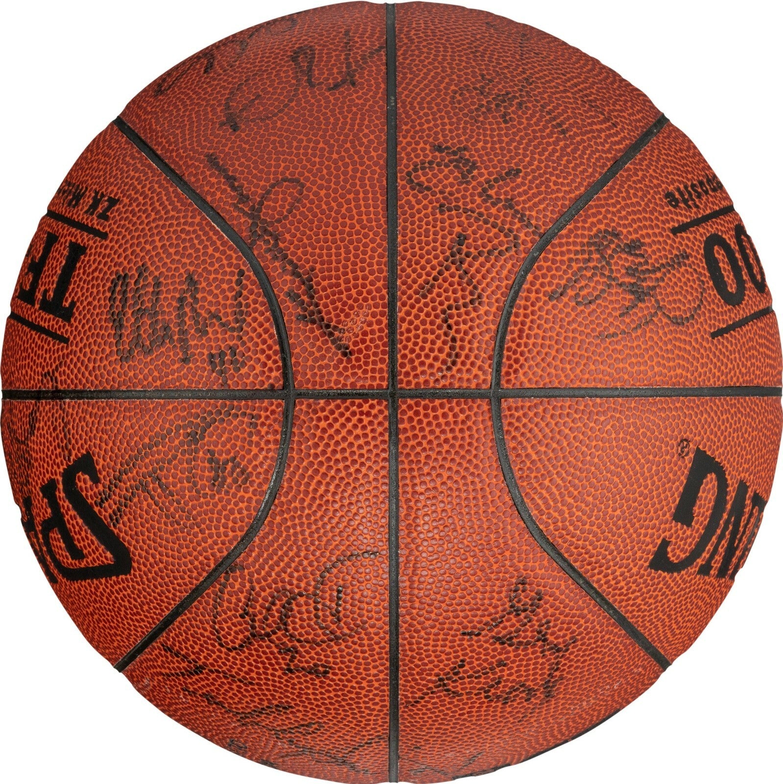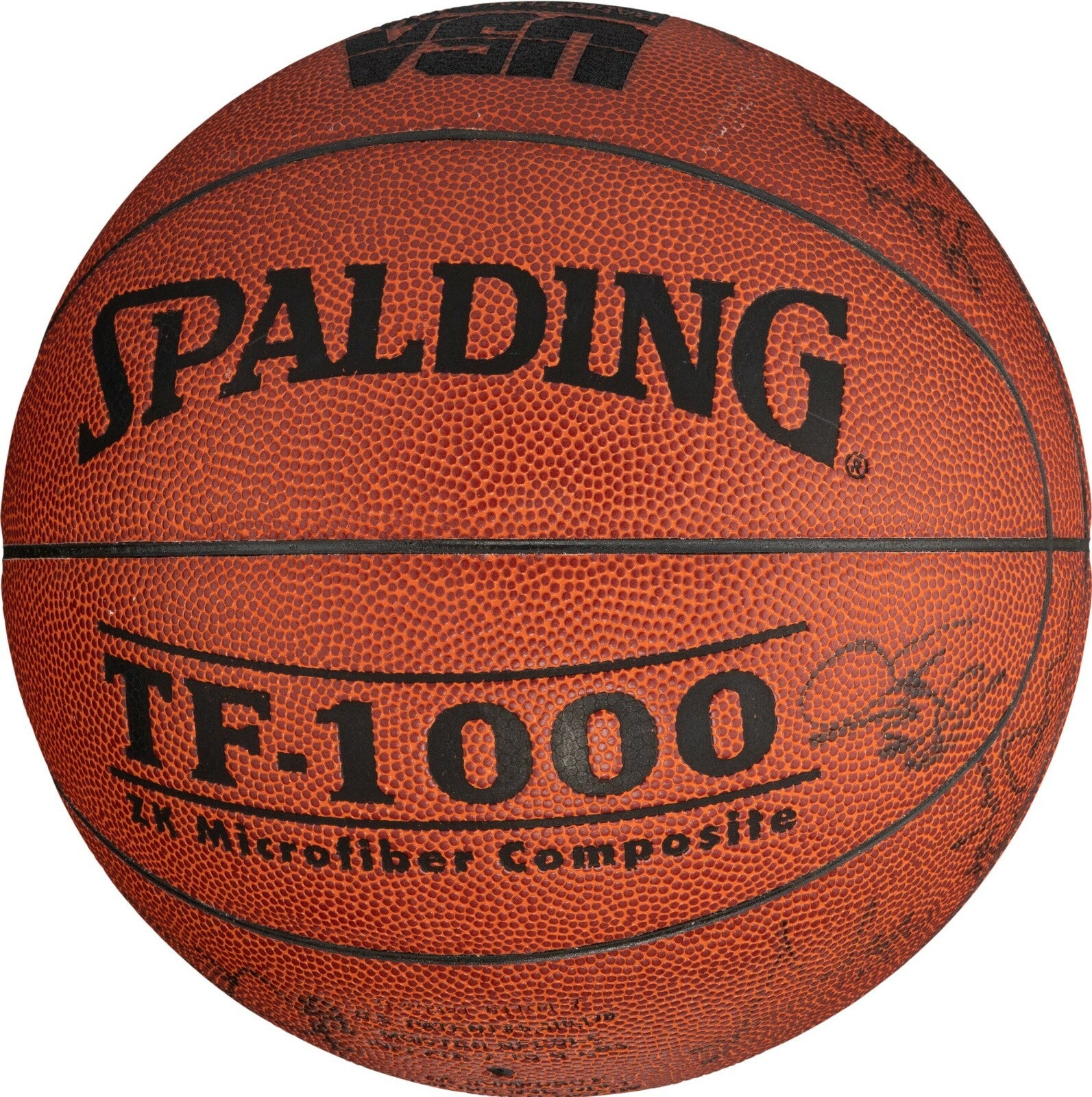 Spalding TF-1000 sphere features "USA Basketball" logo and "1999 Men's Americas Olympic Qualifying Tournament 67 of 180" stamping. Signed by eighteen, including Tim Duncan, Kevin Garnett, Gary Payton, Jason Kidd, Tim Hardaway, Allan Houston, Richard Hamilton, Steve Smith, Wally Szczerbiak, Tom Gugliotta, Vin Baker, Elton Brand, Larry Brown (head coach), Gene Keady (assistant coach), Tubby Smith (assistant coach), Lenny Currier (trainer), Keith Jones (trainer), and one other.