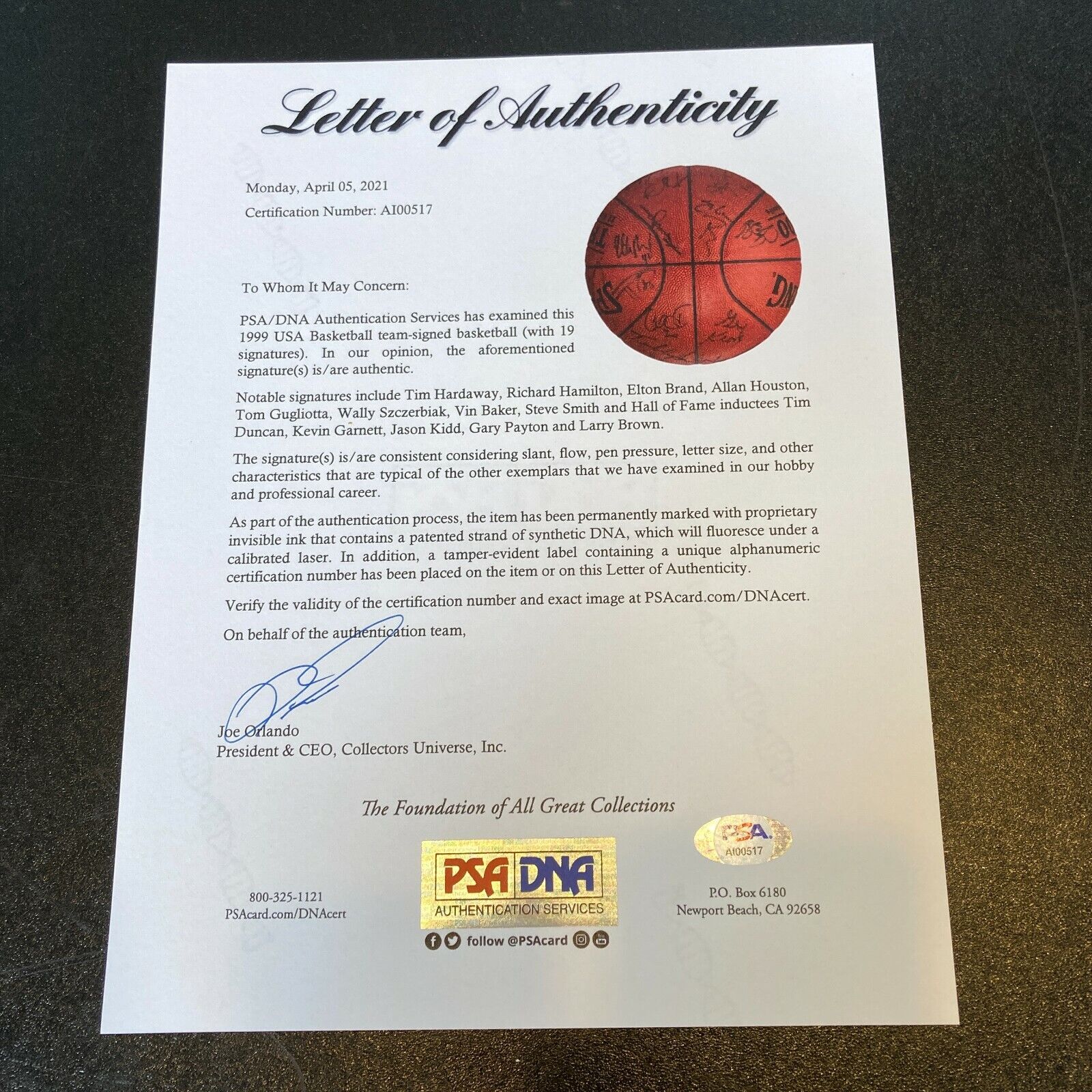 Tim Duncan Kevin Garnett 1999 Team USA Olympics Signed Basketball 19 Sig PSA DNA