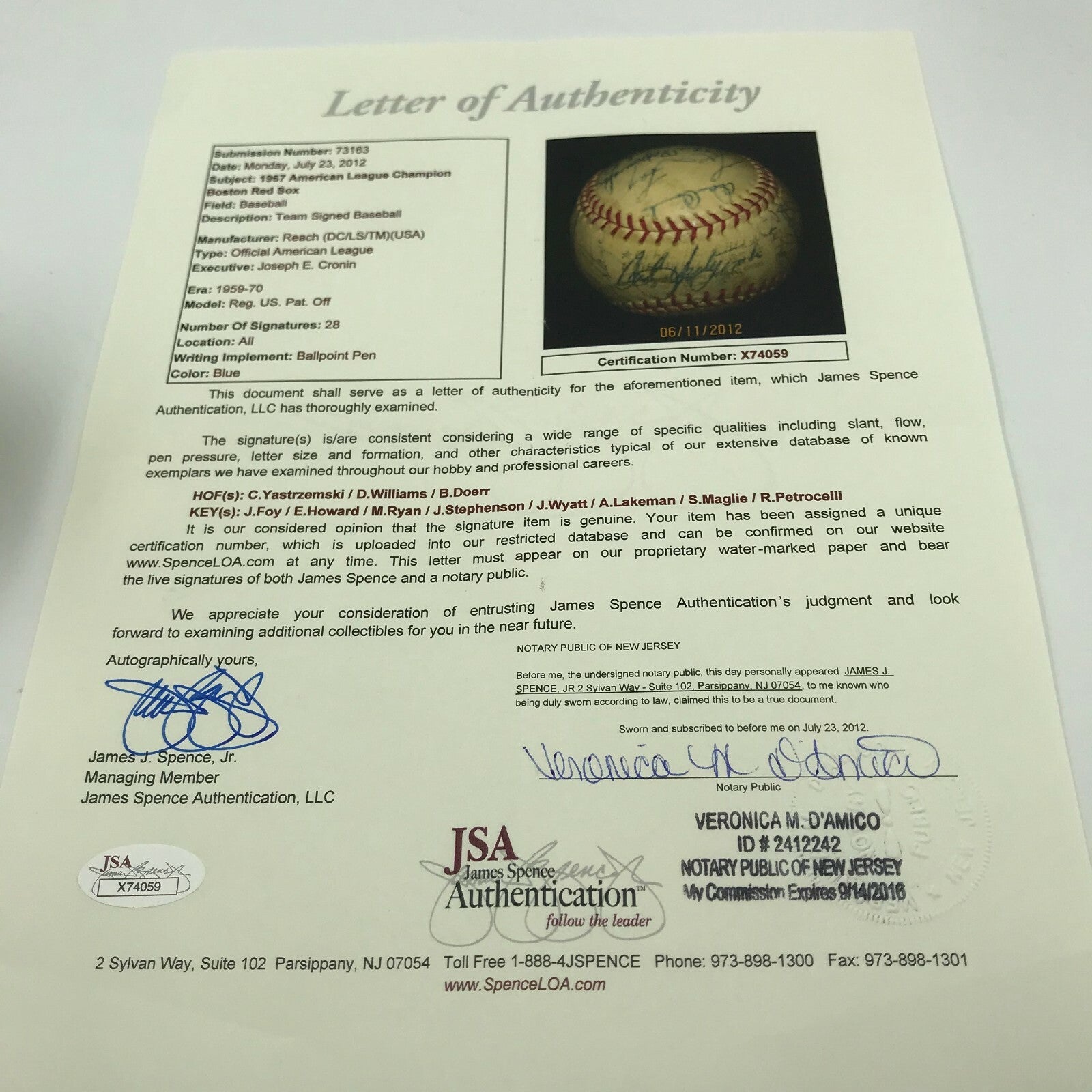 Very Nice 1967 Boston Red Sox AL Champs Team Signed American League Baseball With JSA COA