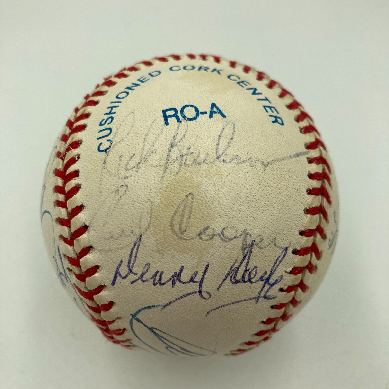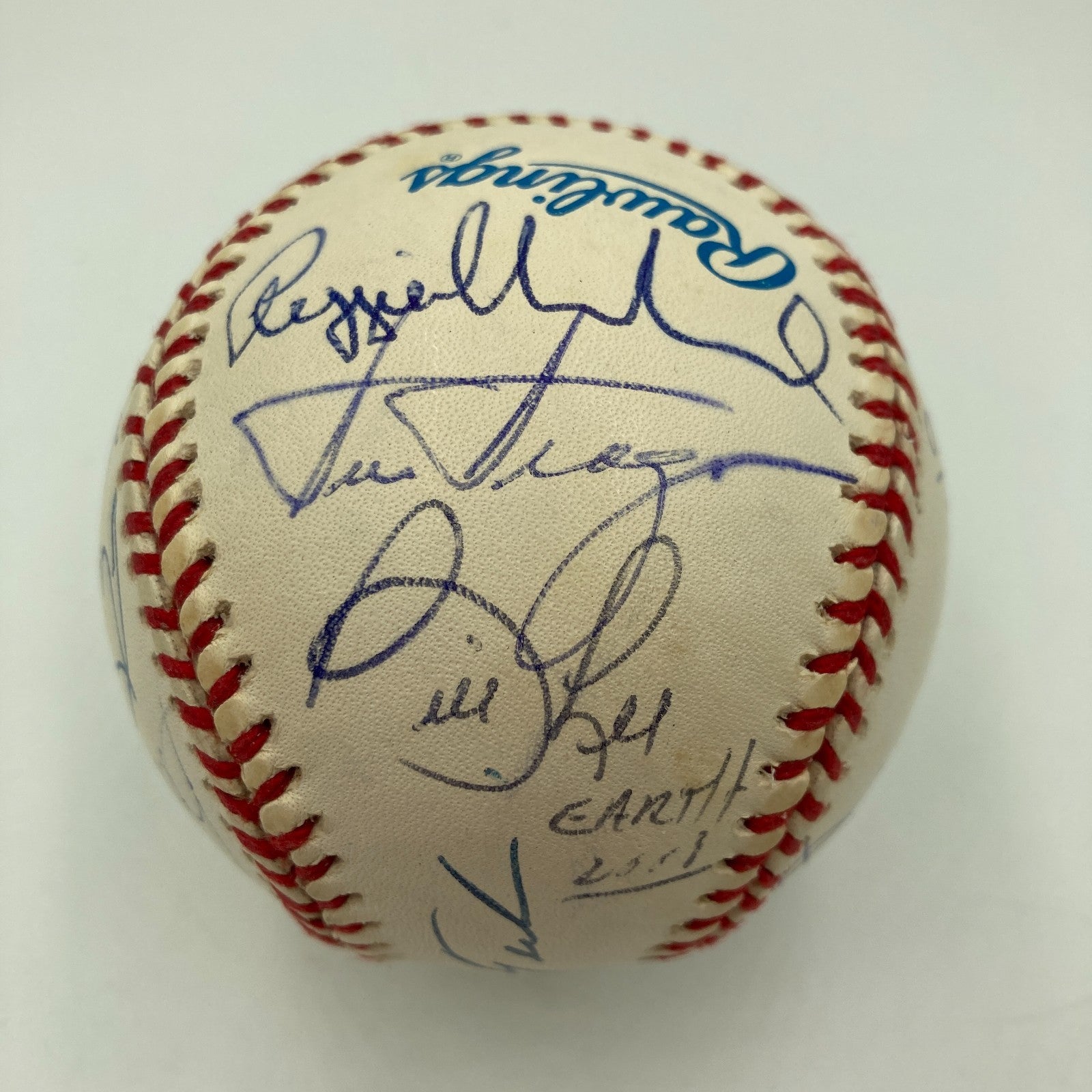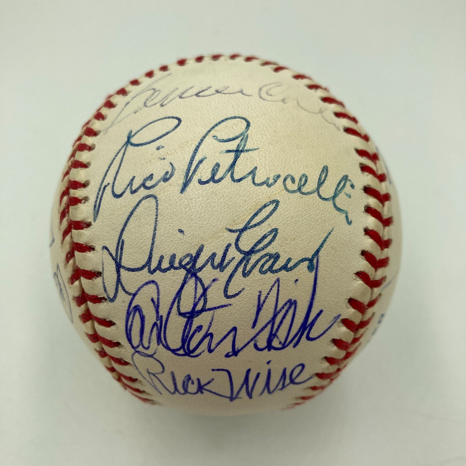 1975 American League Champion Boston Red Sox reunion ball is signed by Carl Yastrzemski, Carlton Fisk, Jim Rice, Rick Burleson, Denny Doyle, Cecil Cooper, Reggie Cleveland, Dick Drago, Bill Lee, Bernie Carbo, Rico Petrocelli, Dwight Evans, Rick Wise, Luis Tiant, Rick Miller, and Fred Lynn.